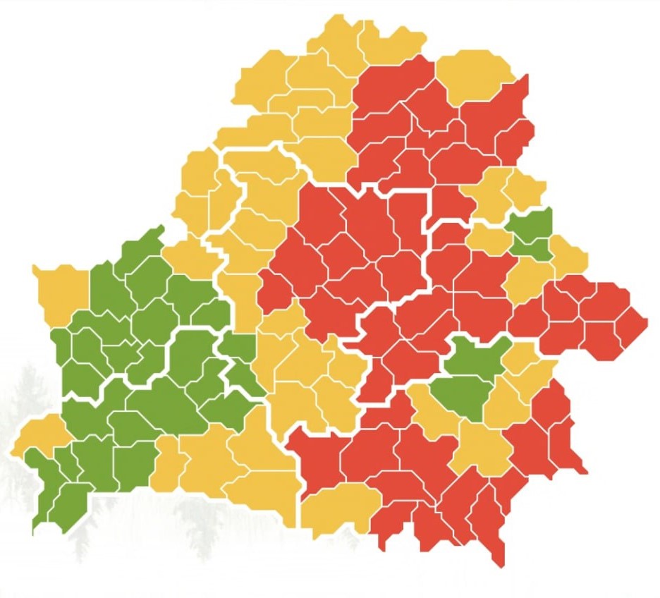 На данный момент запрет на посещение лесов действует в Бешенковичском, Витебском, Лепельском, Лиозненском, Полоцком, Сенненском, Толочинском, Ушачском, Чашникском и Шумилинском районах. На территории всех остальных районов Витебской области введены ограничения на посещение лесов.