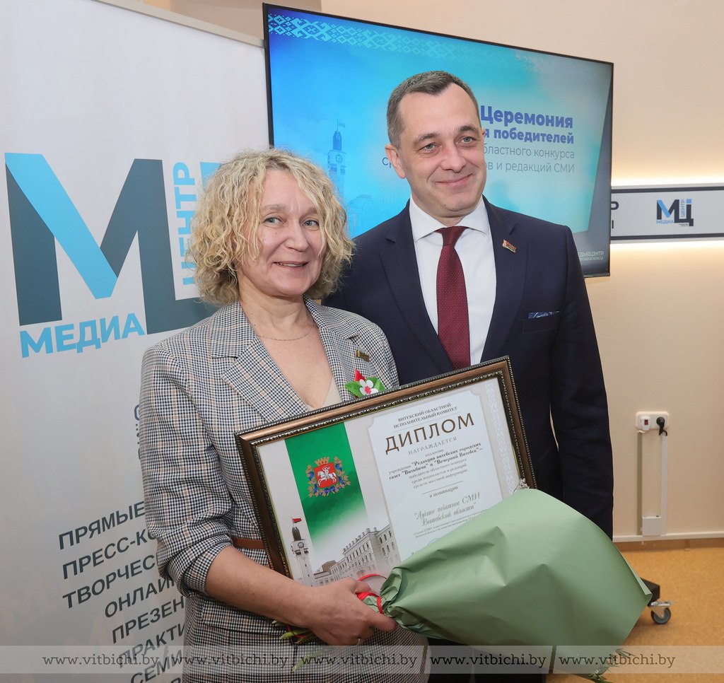 Редакция газет "Витьбичи" и "Вечерний Витебск" стала победителем в номинации ”Лучшее печатное СМИ Витебской области“. Диплом председатель Витебского облисполкома Александр Субботин вручил главному редактору Диане Курило.
