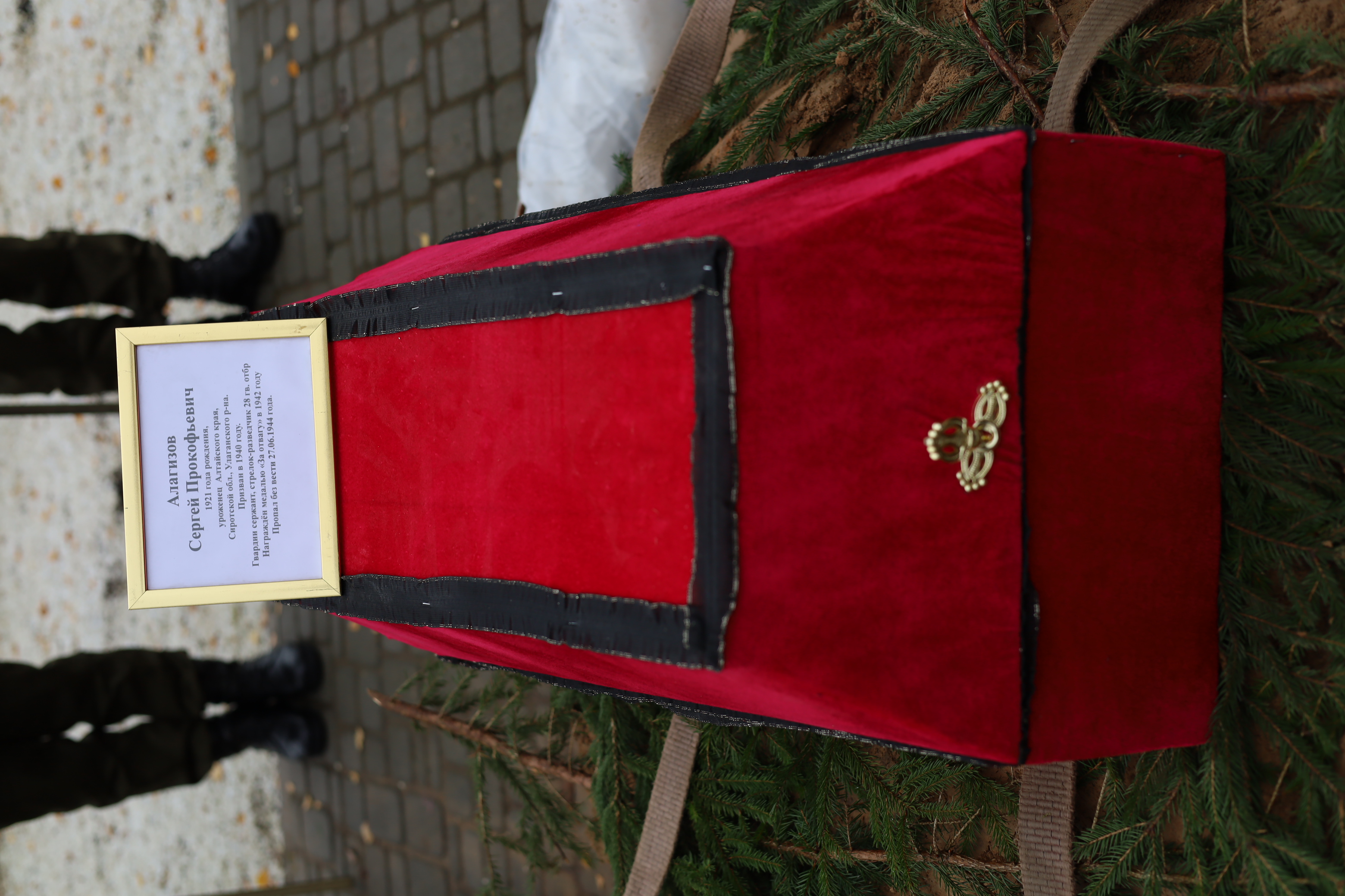 Была также найдена медаль «За отвагу», два знака «Гвардия», фрагменты амуниции погибших красноармейцев. По номеру медали «За отвагу» в результате изучения архивной информации было установлено, что медалью был награжден в конце ноября 1942 года гвардии сержант Сергей Прокофьевич Алагызов (Алагизов), 1921 года рождения, уроженец Алтайского края, стрелок-пулеметчик взвода разведки роты управления 28-й гвардии танковой Лиозненской бригады. Он числился пропавшим без вести с июня 1944-го года.