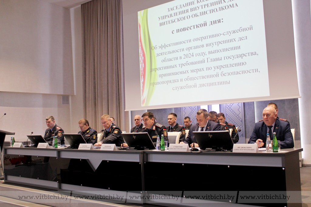 В рамках заседания рассмотрели актуальные вопросы, требующие обсуждения и принятия конкретных управленческих решений. В мероприятии приняли участие заместитель Министра внутренних дел генерал-майор милиции Дмитрий Корзюк, а также председатель Витебского облисполкома Александр Субботин, представители силовых ведомств и областного суда.