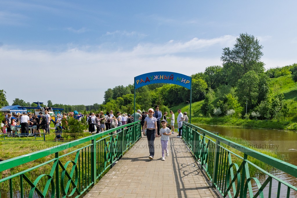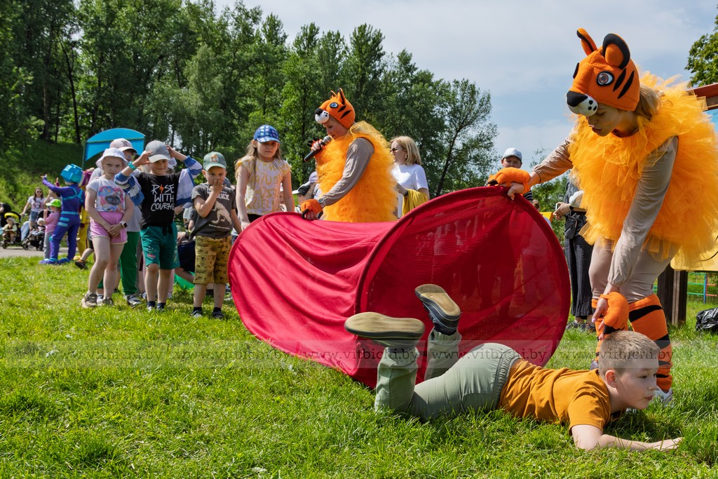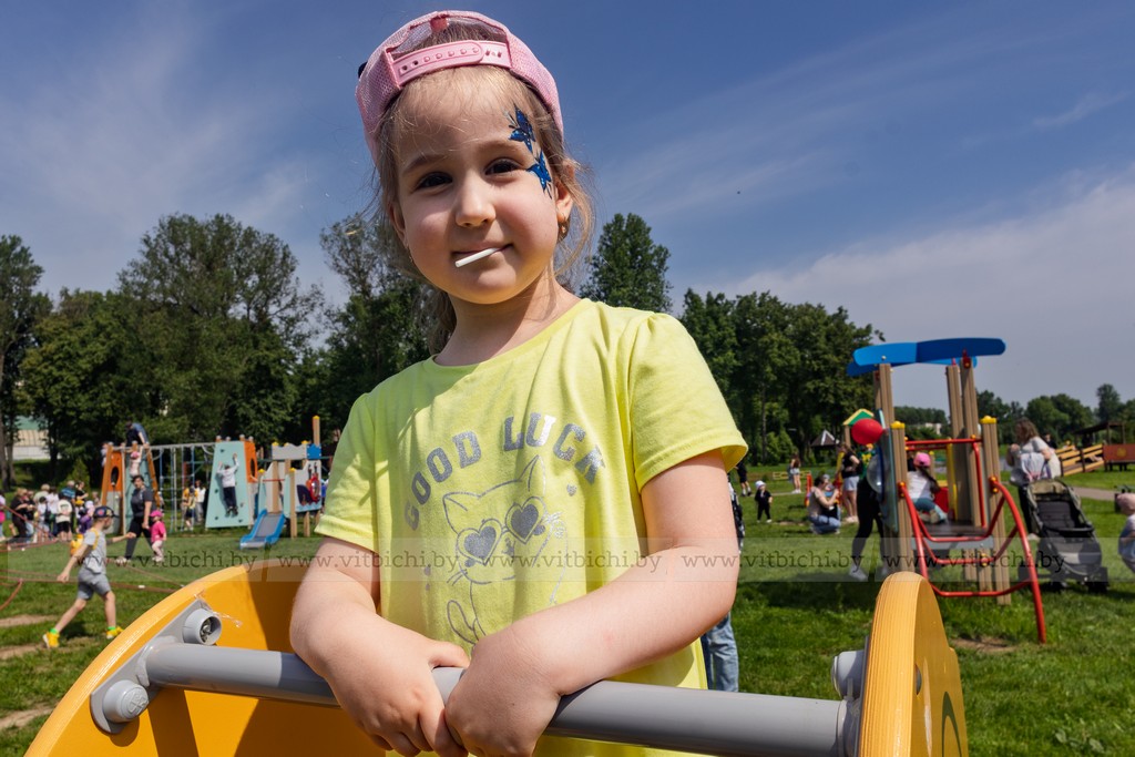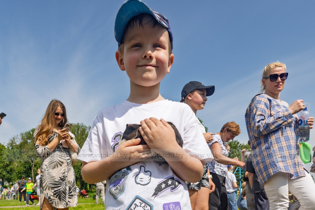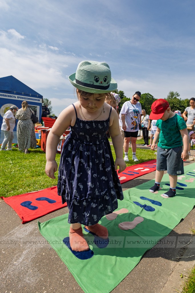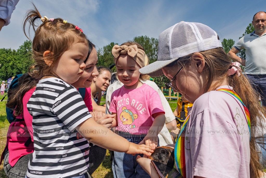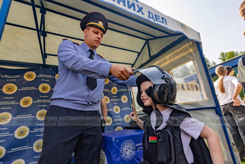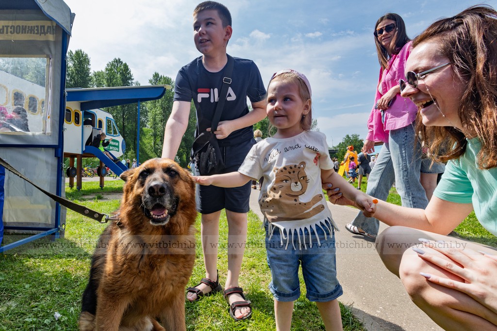 На зеленом острове, который в этот солнечный день напоминал улей, было много музыки, песен и танцев от творческих коллективов учреждений образования. Желающих творить приглашали на различные мастер-классы, которые проводили районная организация БРСМ, территориальный центр социального обслуживания населения Октябрьского района. Представители УП «Витебскгаз» и Октябрьского (г.Витебска) отдела Департамента охраны воспользовались возможностью, чтобы в игровой форме ознакомить ребят с правилами личной безопасности и своими службами. Вне конкуренции были кинолог Егор с овчаркой по кличке Кент. Пес был самым популярным персонажем праздника – покладистого и дружелюбного, его можно было гладить и даже кормить.