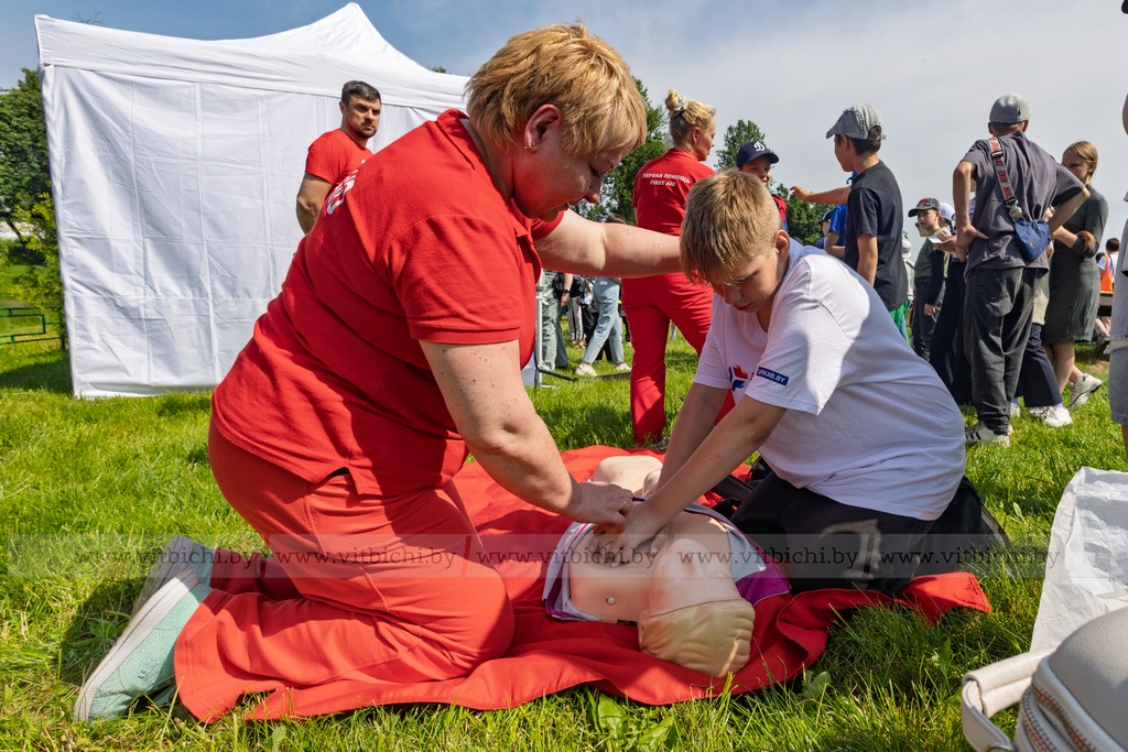 Областное управление ОСВОД организовало для детей ликбез по основам спасения на воде. Городская организация Белорусского Красного Креста провела курс обучения первой помощи, которую в случае необходимости могут оказать даже дети, после чего все дружно уселись за раскраски. Ребят постарше заинтересовала тема, предложенная сотрудниками подросткового наркологического отделения областного клинического центра психиатрии и наркологии, которая касалась пагубных привычек и их негативного влияния на организм.