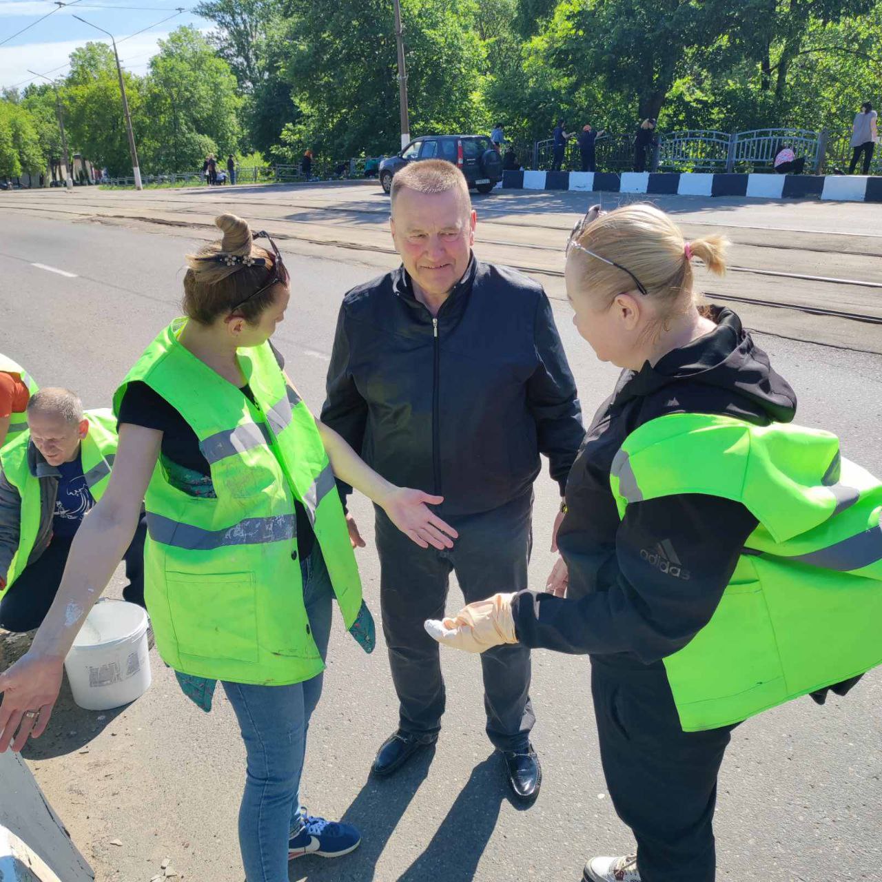 31 мая / «Витьбичи» / Александр Пукшанский /. В Первомайском районе города Витебска сотрудники администрации, предприятий, организаций во время субботника благоустраивали путепровод, расположенный возле ОАО «Витебские ковры».