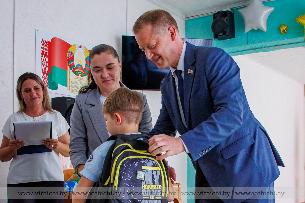 Напутственные слова озвучил и заместитель начальника Витебского отделения Белоруской железной дороги Сергей Ляденко. Он также от имени коллег подарил юным горожанам то, что им поможет получить знания.