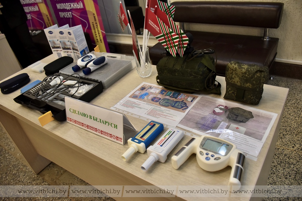 Заявляют о себе, своих достижениях и технологиях, используемых в лечении, областные учреждения здравоохранения – специализированный центр, роддом, онкодиспансер, центр медицинской реабилитации. Витебское УП «Фармация» представляет любопытную экспозицию, в которой ртутные тонометры и термометры соседствуют с электронными, «Фармакопея» (настольная книга фармацевтов и провизоров) 1946 года выпуска – с новейшим изданием.