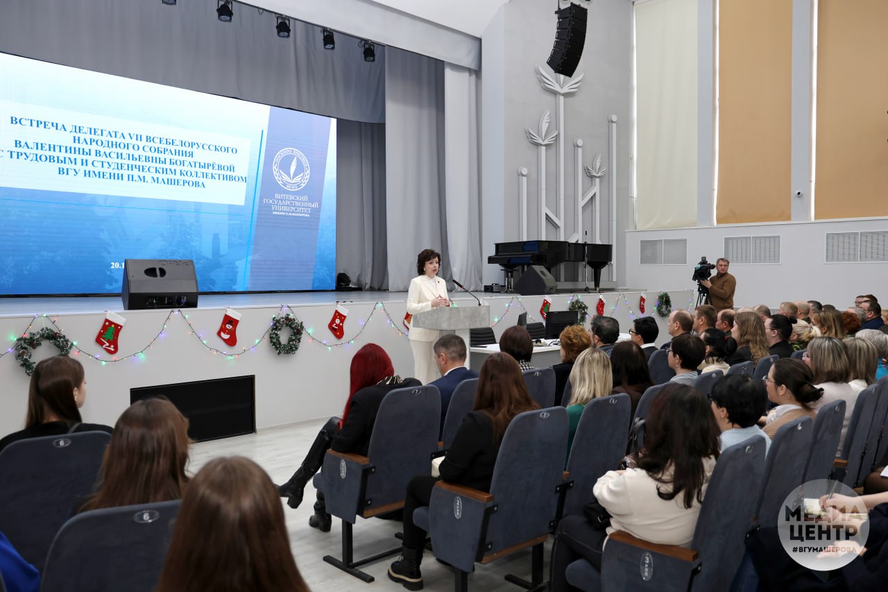 В Витебском государственном университете имени П.М. Машерова 20 декабря состоялась встреча ректора вуза, делегата VII Всебелорусского народного собрания Валентины Богатырёвой с трудовым и студенческим коллективом. Об этом сообщает медиацентр ВГУ.