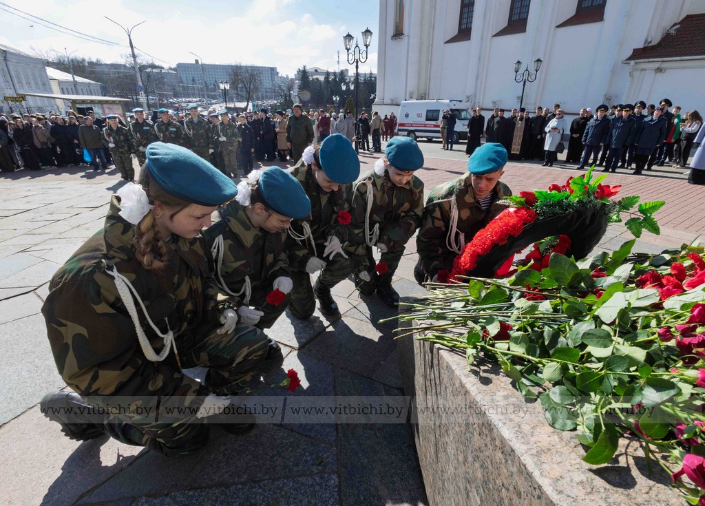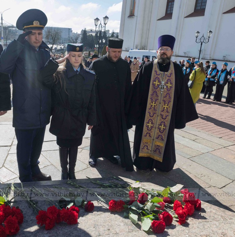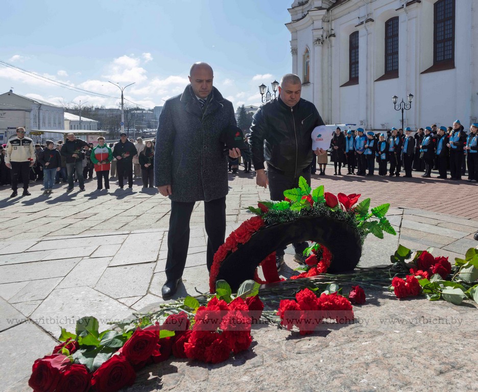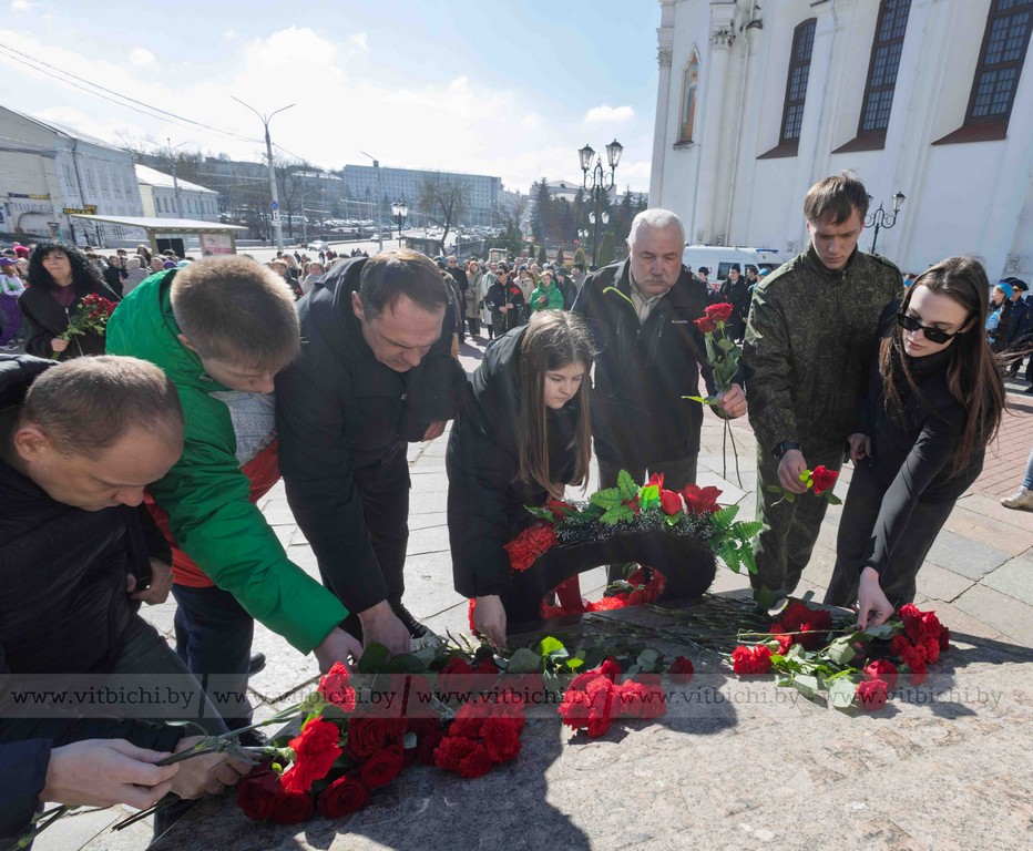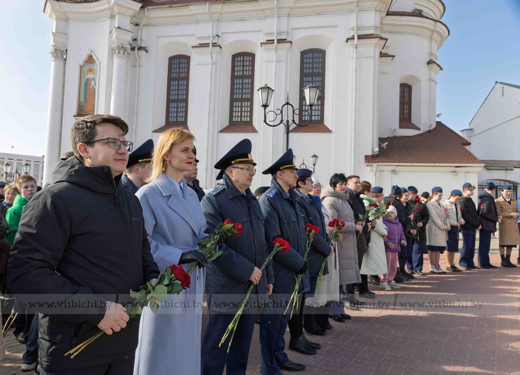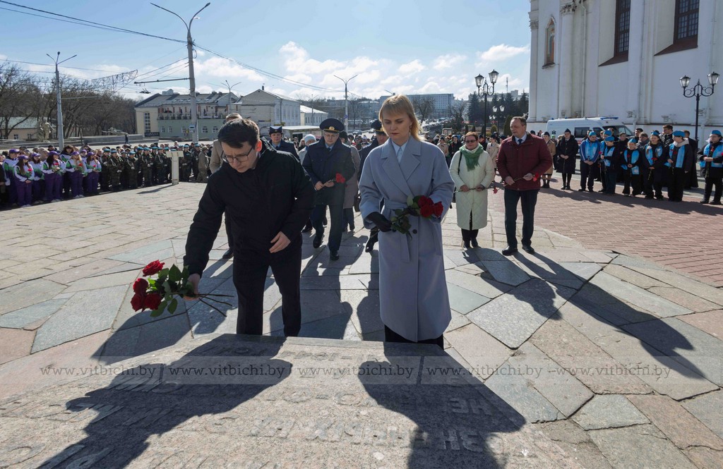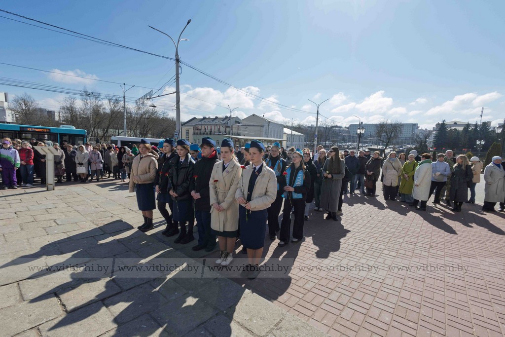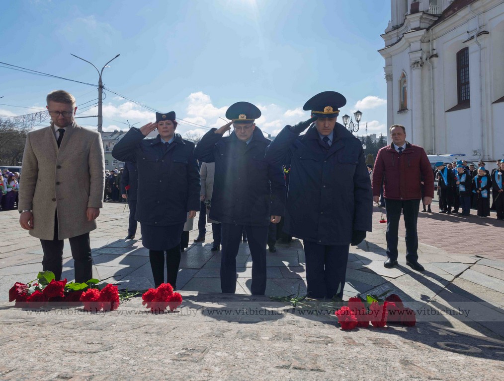 В Витебске состоялась церемония народного возложения цветов к памятному знаку у ратуши, на месте казни советских патриотов в период временной оккупации гитлеровскими захватчиками города на Двине. В акции приняли участие представители органов власти и правоохранительных органов, общественных организаций, трудовых коллективов, священнослужители, учащаяся молодежь.