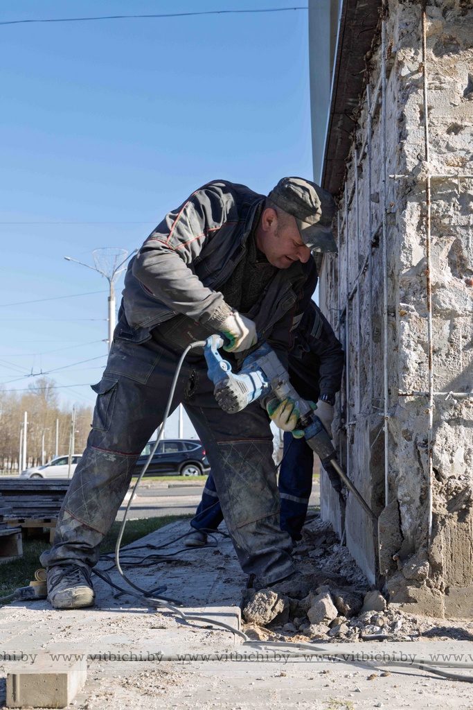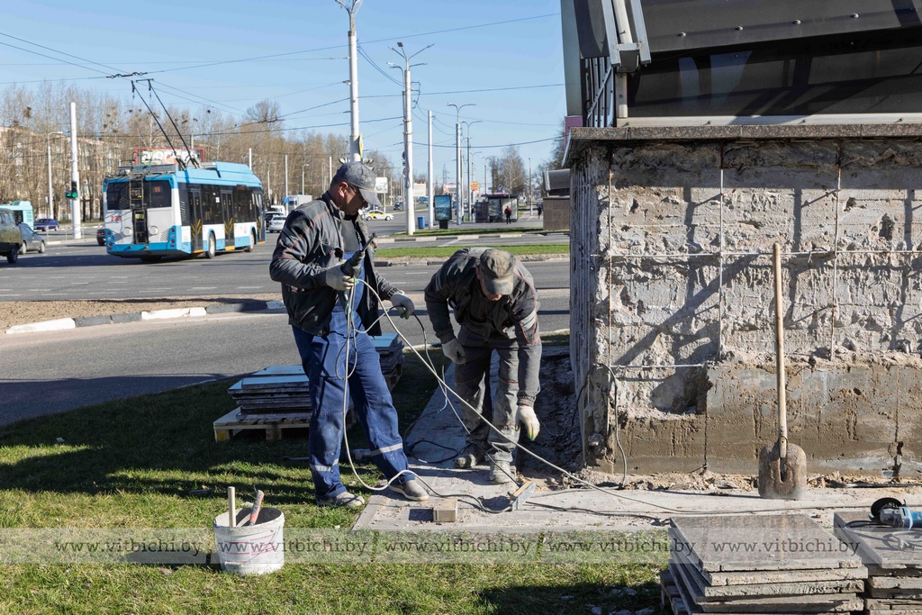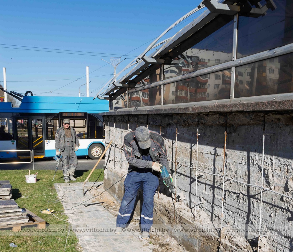 4 апреля / «Витьбичи» /. Ремонт внешней облицовки гранитной плиткой выхода из подземного перехода со стороны здания Следственного комитета на проспекте Московском начало 3 апреля ГП «Гордормост».