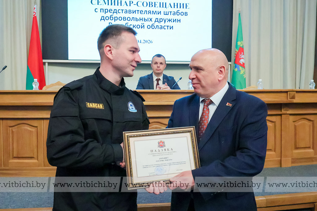 – Потенциал добровольных дружин оказался востребованным при проведении кампании по выборам Президента Республики Беларусь в обеспечении общественного порядка на избирательных участках, они были задействованы при проведении мероприятий во время государственных праздников, – отметил заместитель председателя облисполкома Вячеслав Дурнов.