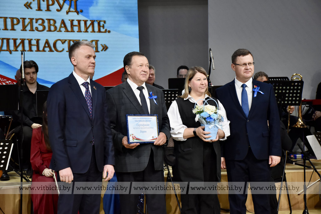 В концертном зале «Витебск» прошло торжественное мероприятие «Труд. Призвание. Династия», посвященное Празднику труда. На торжестве чествовали работников разных сфер и представителей трудовых династий, которые много лет верны своей профессии и родному предприятию.