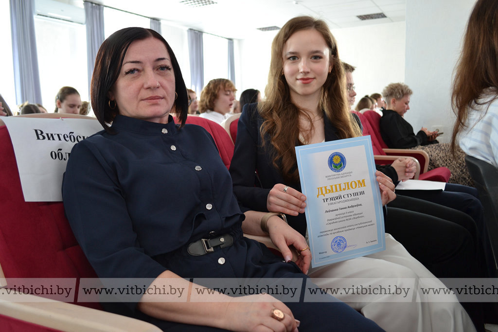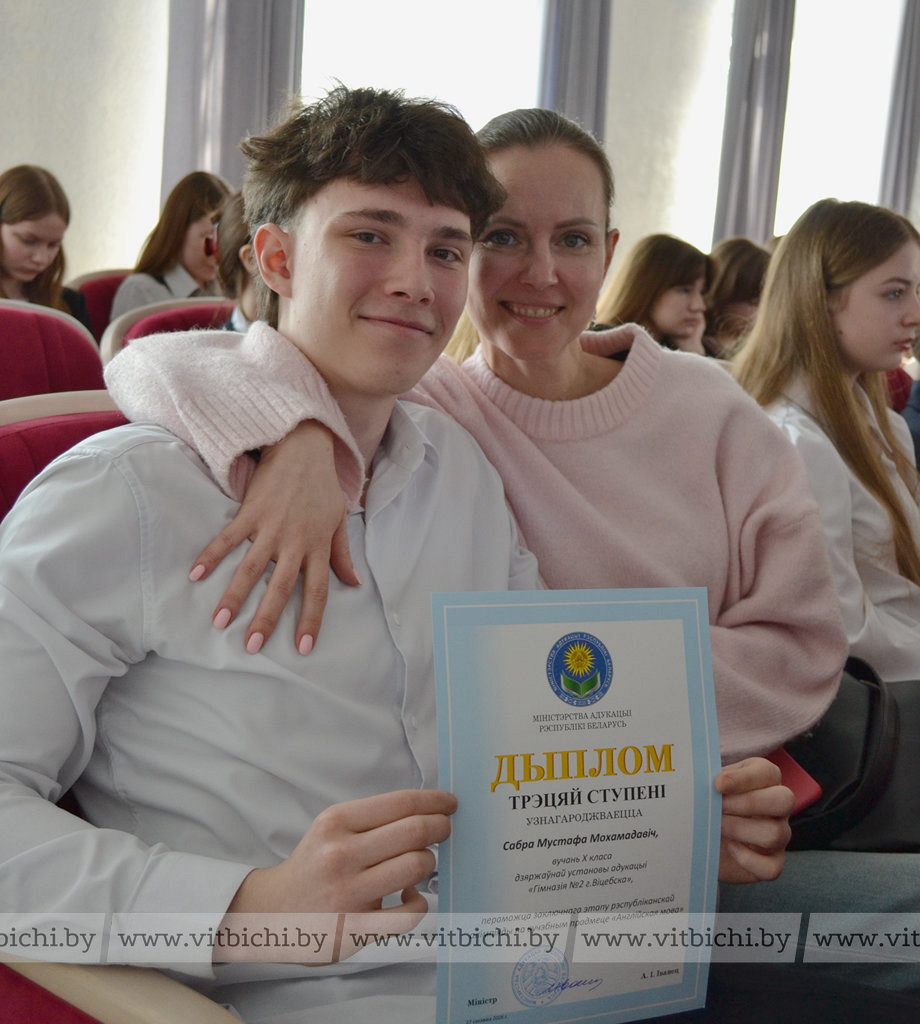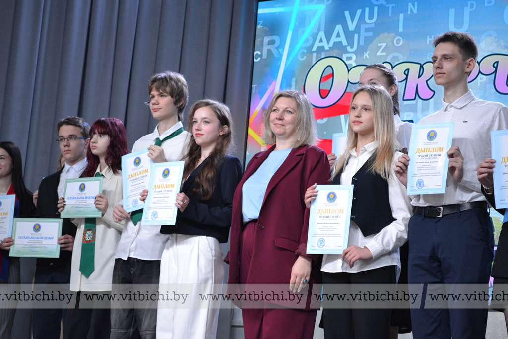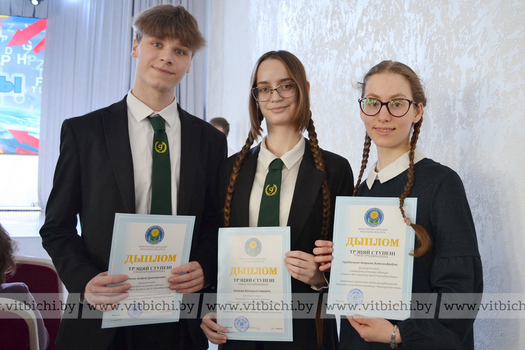 Юные представители команды Витебской области в финале олимпиады показали отличные результаты. Так, учащаяся гимназии № 2 города Новополоцка Варвара Боровская стала обладателем диплома первой степени по немецкому языку. Диплом третьей степени по этому предмету – у Анны Лейченко из средней школы № 34 города Витебска. За дипломами второй и третьей степени по французскому языку с гордостью поднимались на сцену учащиеся гимназии № 9 имени А. П. Белобородова Анарина Городецкая, Андрей Лучко, Виктория Князева, Алина Ермашкевич и Мария Виноградова. Дипломы второй и третьей степени по испанскому и английскому языкам получили учащиеся гимназии № 2 Нелли Пименова, Шарлотта Максимова и Мустафа Сабра. Витебского гимназиста на финале пришла поддержать мама, она очень гордится успехами талантливого сына.