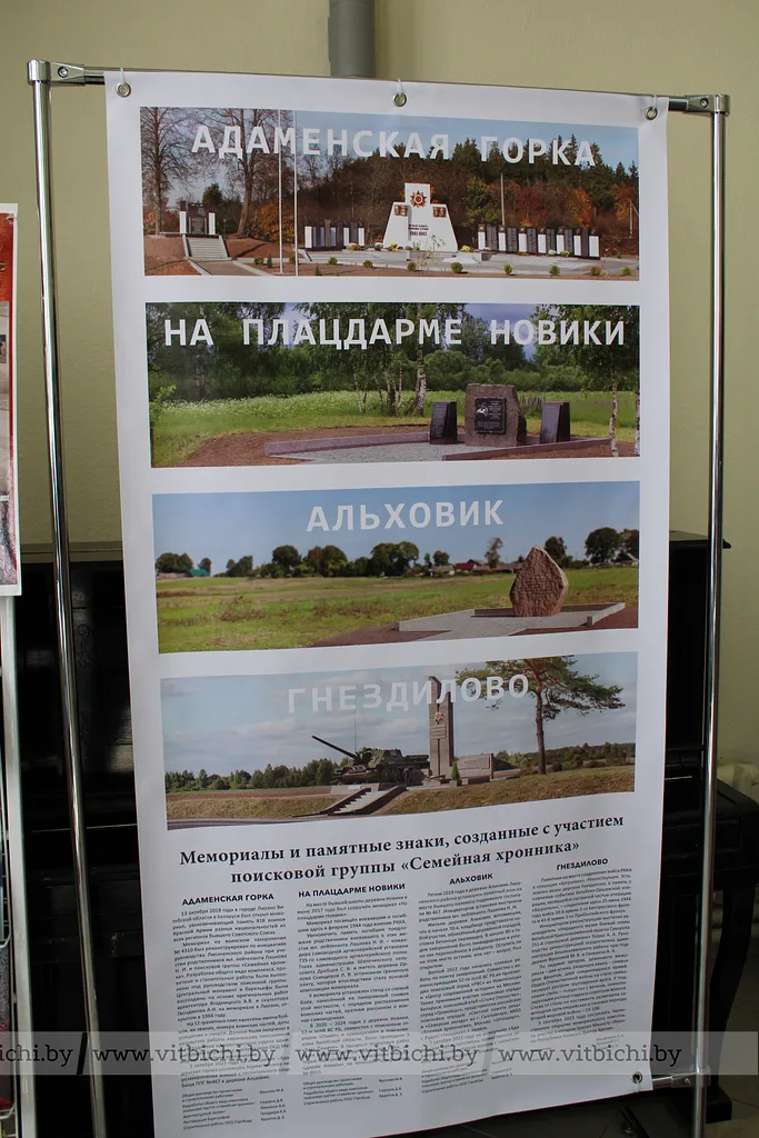 Открытие выставки, которая расположилась в стенах музея истории частного коллекционирования, также сопровождалось презентациями о судьбах бойцов, раритетных находках и многом другом. Особенно были отмечены мероприятия в рамках программы «Чтим и помним». Это современная интернет-платформа, которая автоматизирует весь комплекс военно-мемориальной работы и обеспечивает высокое качество работы по увековечению памяти погибших. Сегодня на ней можно найти 29723 фамилии павших защитников Родины, установленные поисковыми отрядами на территории Витебской области.