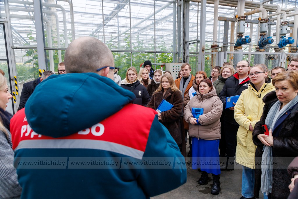 Молодые люди и девушки узнали, что тепличный комбинат является ведущим в области и одним из крупнейших в республике. Здесь работает собственная ТЭЦ, которая дает возможность выращивать овощи на светокультуре и получать овощную продукцию с ноября по март. Продукцию предприятия покупают в объектах торговли Витебска и районов. Заместитель директора предприятия Александр Матюшков рассказал молодым коллегам, что «Рудаково» помимо выращивания овощей известно как крупнейший производитель молока, мяса, зерновых культур и кормов. Всего на предприятии работает почти 900 человек, летом коллектив увеличивается до 1300 работников, задействованных в сельхозпроизводстве. Все, чем гордится предприятие «Рудаково», создано золотыми руками работников – людей преданных и искренне любящих свое дело.