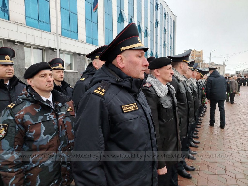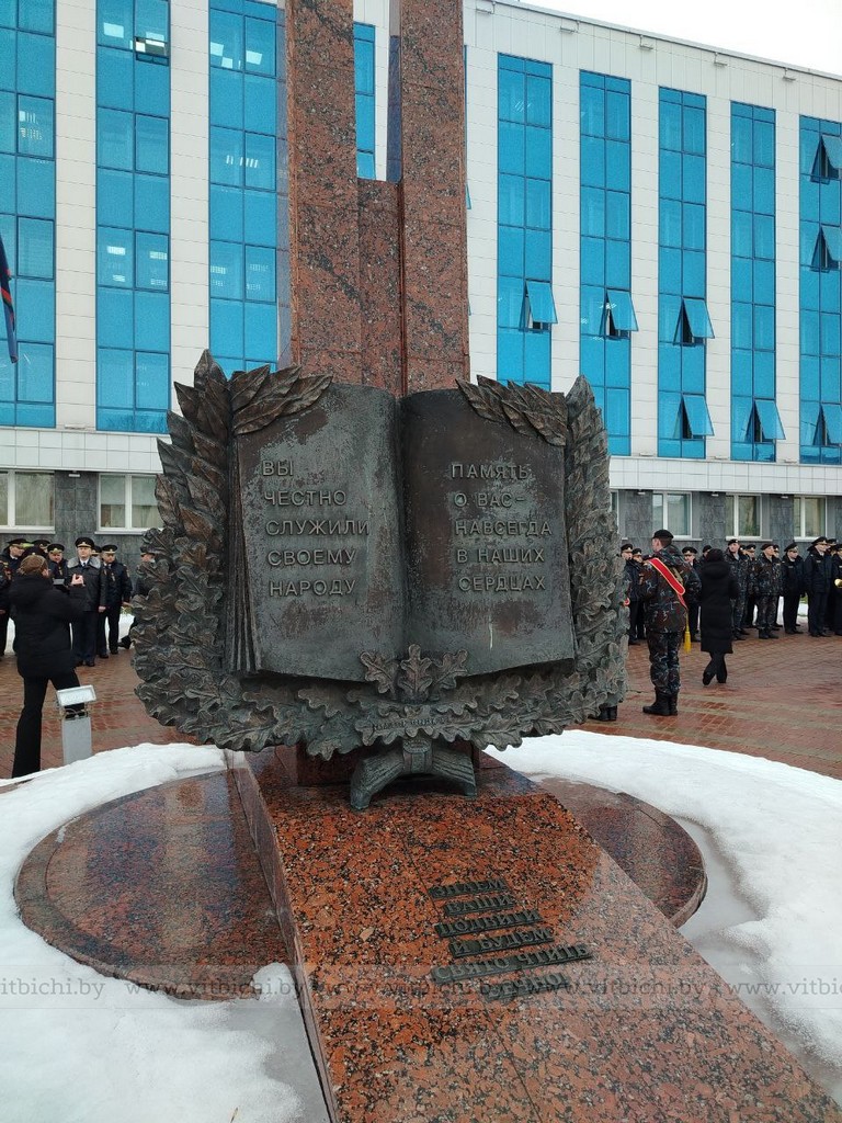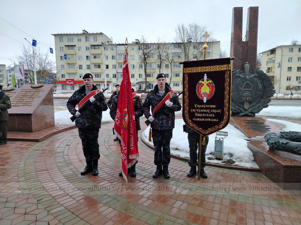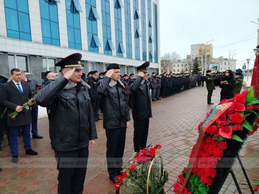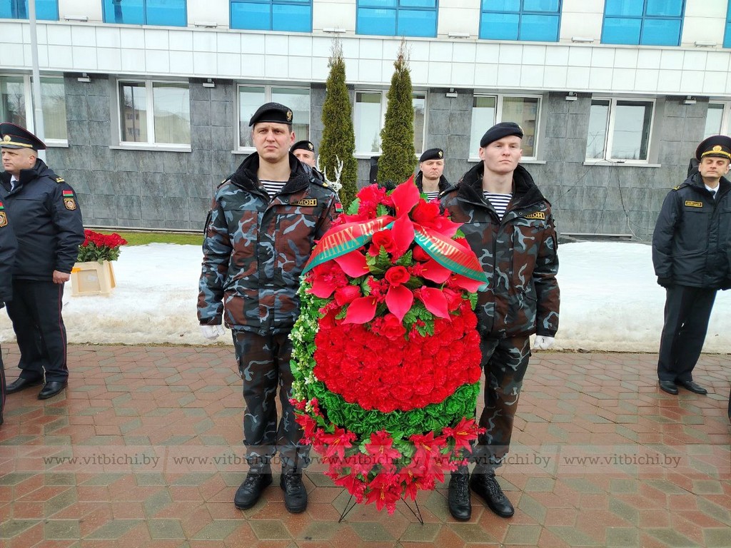 5 марта / «Витьбичи» / Виталий Сапроненко /. По традиции торжественные мероприятия начались у памятника сотрудникам органов внутренних дел и военнослужащим внутренних войск, погибшим при исполнении служебного и воинского долга, церемонией возложения венков и цветов.