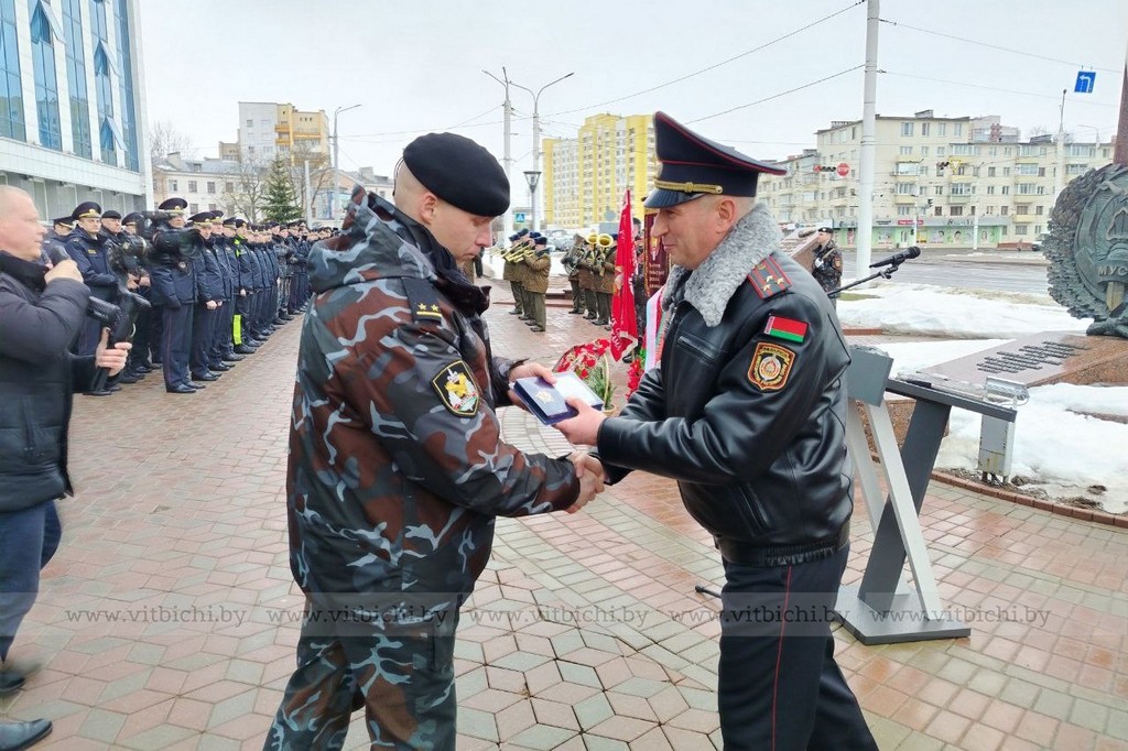 – Сотрудник милиции – это не профессия, а образ жизни! Если есть угроза окружающим, он пожертвует собой, чтобы спасти других. Подвиги сотрудников, в военное и мирное время ценой жизни, – вот прочный фундамент, на котором мы продолжаем новейшую историю милиции. Органы внутренних дел Республики Беларусь твердо стоят на страже конституционного порядка и национальной безопасности, выполняют свою миссию по охране общества и государства, – отметил начальник УВД Витебского облисполкома Максим Суббота.