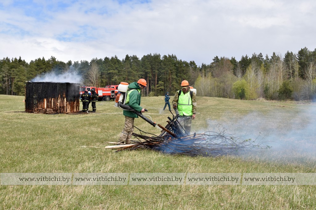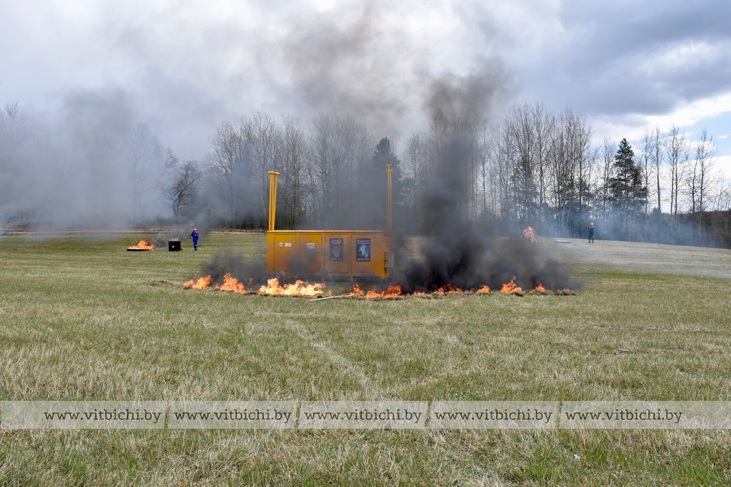 В первый день комплексных учений неподалеку от урочища Шпили была отработана ликвидация пожара в экосистеме. По замыслу учений существовала угроза распространения огня на лесной массив и жилой сектор. По сценарию сильный порыв ветра привел к замыканию электропроводов, вспыхнула искра, от которой загорелась сухая растительность, огонь перекинулся на кустарник. Спасатели совместно с работниками лесхоза остановили пламя, не дав ему распространиться дальше. Аварийная служба витебскгаза нивелировала угрозу возникновения пламени вокруг газораспределительной установки.