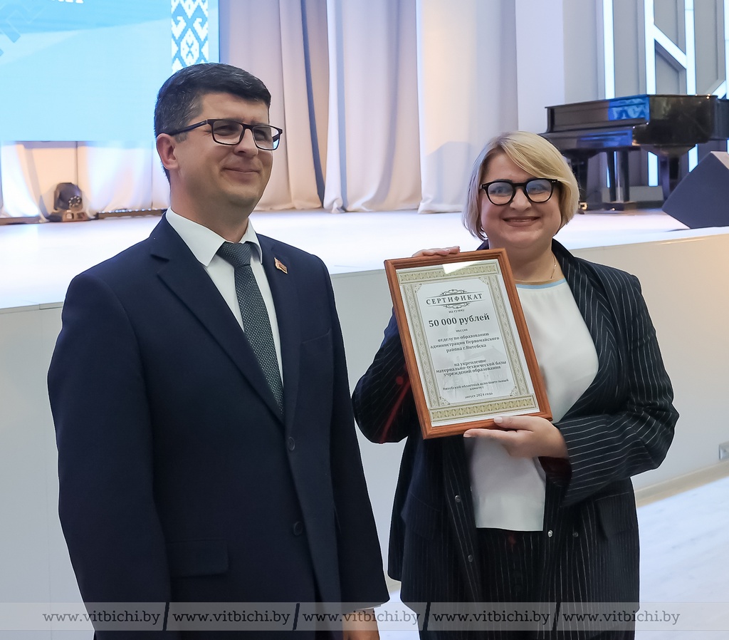 Александр Субботин вручил денежные сертификаты на укрепление материально-технической базы учреждений образования: на сумму 50 тысяч рублей -- отделу по образованию Новополоцкого горисполкома, на сумму 30 тысяч рублей -- отделу по образованию Витебского горисполкома, на сумму - 20 отделу по образованию Браславского горисполкома.