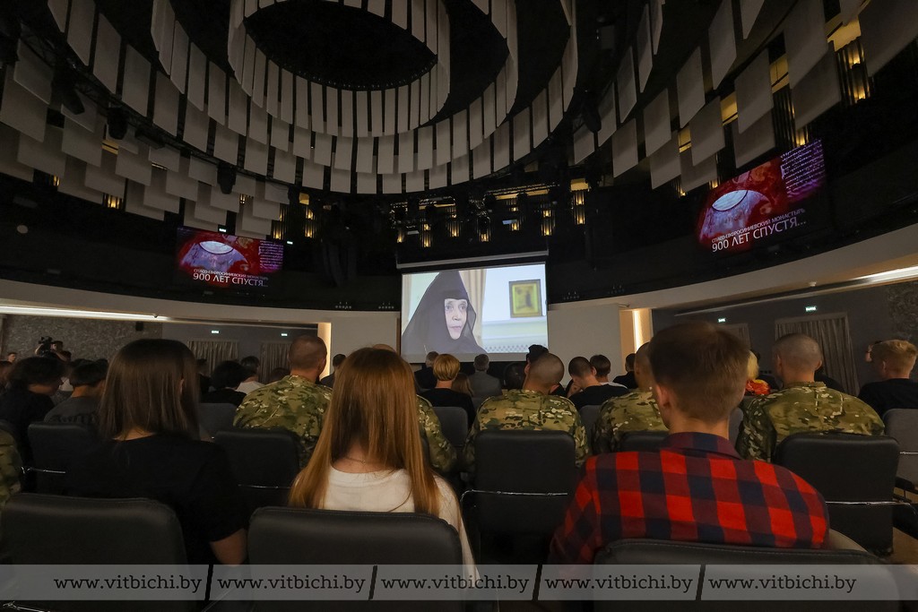 Перед началом сеанса фильм представили кандидат исторических наук, доцент Денис Юрчак и журналисты, ведущие ТРК «Витебск» Иван Паюченко и Сергей Марков. Они поблагодарили главу Придвинского края, председателя Витебского облисполкома Александра Субботина за поддержку в создании документального проекта. Главной ценностью работы является то, что авторы успели увековечить ценные моменты реставрационных работ в знаменитом полоцком монастыре, записать уникальных людей современности, которыми можно считать таких специалистов, как первый реставратор храма в 1990-х годах Владимир Ракицкий, научный руководитель реставрации Спасо-Преображенского храма в Полоцке Сергей Лалазаров. В фильме также звучат интересные сведения, которыми поделились магистр исторических наук, археолог, преподаватель ПГУ имени Евфросинии Полоцкой Алексей Коц, ведущий научный сотрудник центра истории и архивного дела Института истории НАНБ Инна Калечиц. О великом духовном подвиге Евфросинии Полоцкой и значении воздвигнутой ею в XII веке жемчужины зодчества и просвещения, коим и сегодня остается Спасо-Евфросиниевский монастырь, делится игумения Евдокия (Левшук), настоятельница Полоцкого Спасо-Евфросиниевского монастыря.