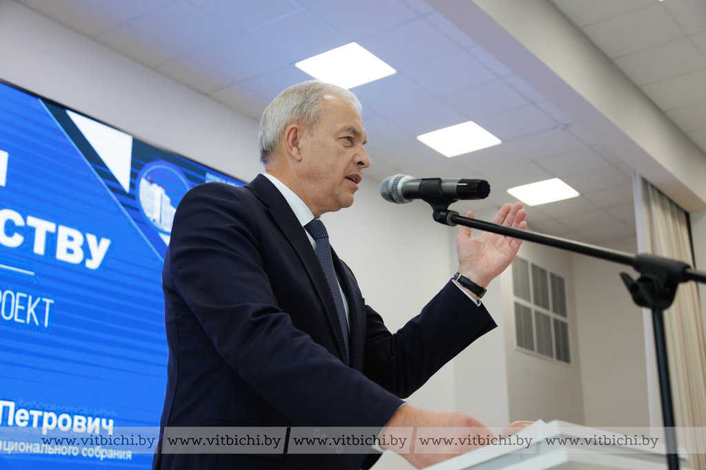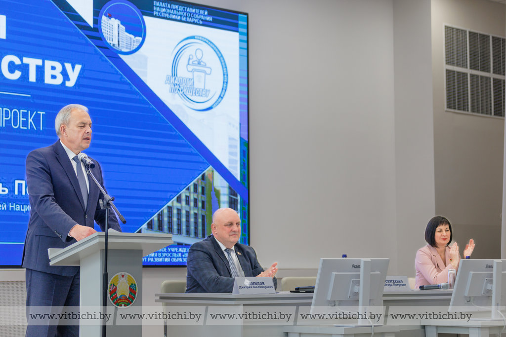 Первые диалоги в рамках проекта в этот день уже состоялись. Перед аудиторией выступил председатель Палаты представителей Национального собрания Республики Беларусь Игорь Сергеенко.