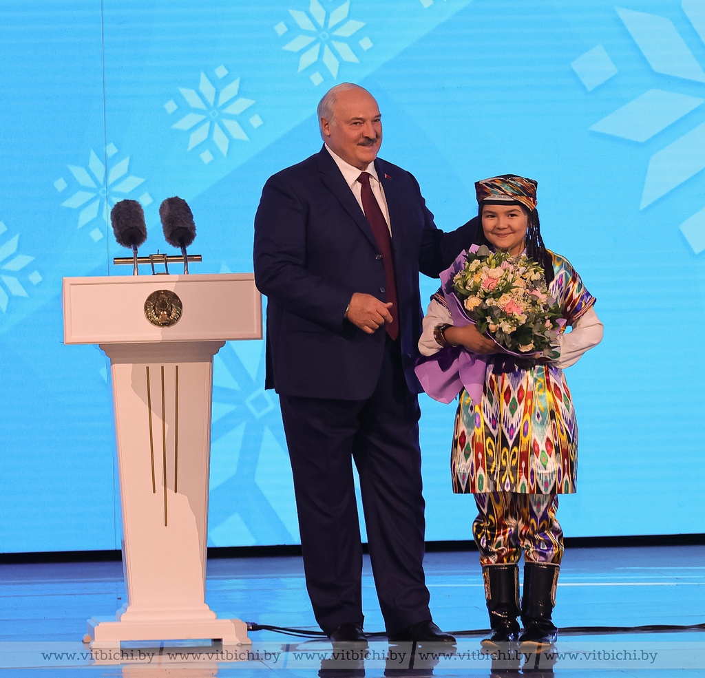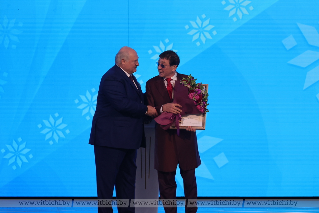 — Примите искренние поздравления не только от меня. От имени всего белорусского народа, от имени славян, собравшихся здесь, в этом огромном зале, поздравить вас с этими прекрасными наградами. Пусть это будет награда очередная.