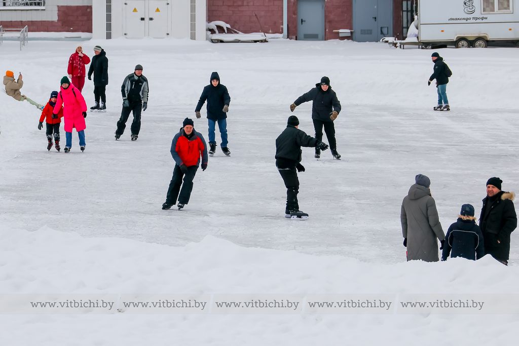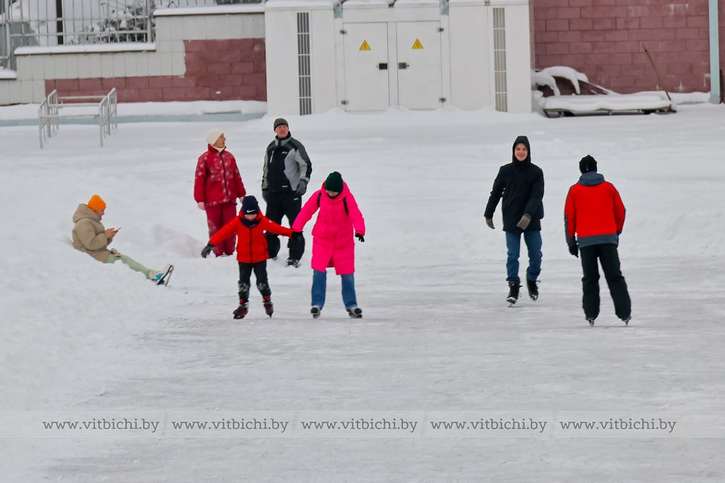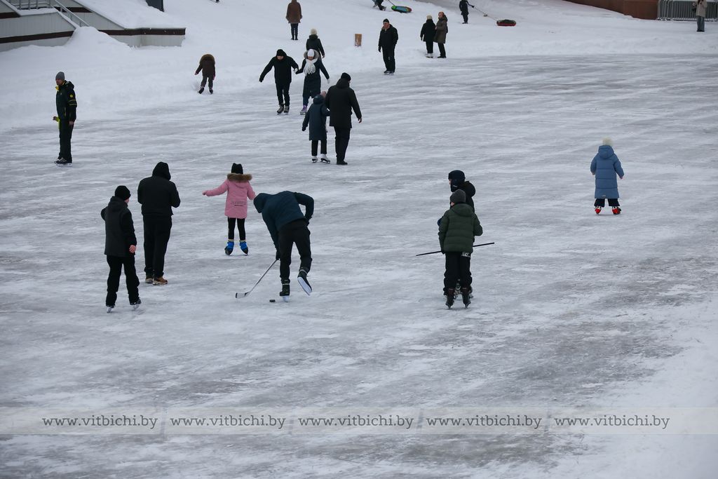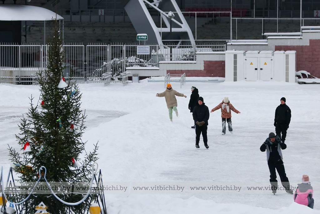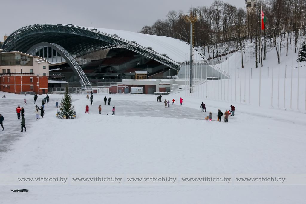 Снежная морозная зима открыла сезон на открытых ледовых площадках Витебска. Одна из них - возле культурно-спортивного комплекса «Летний амфитеатр».