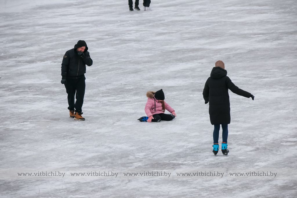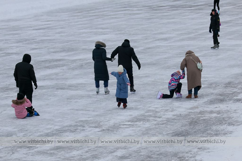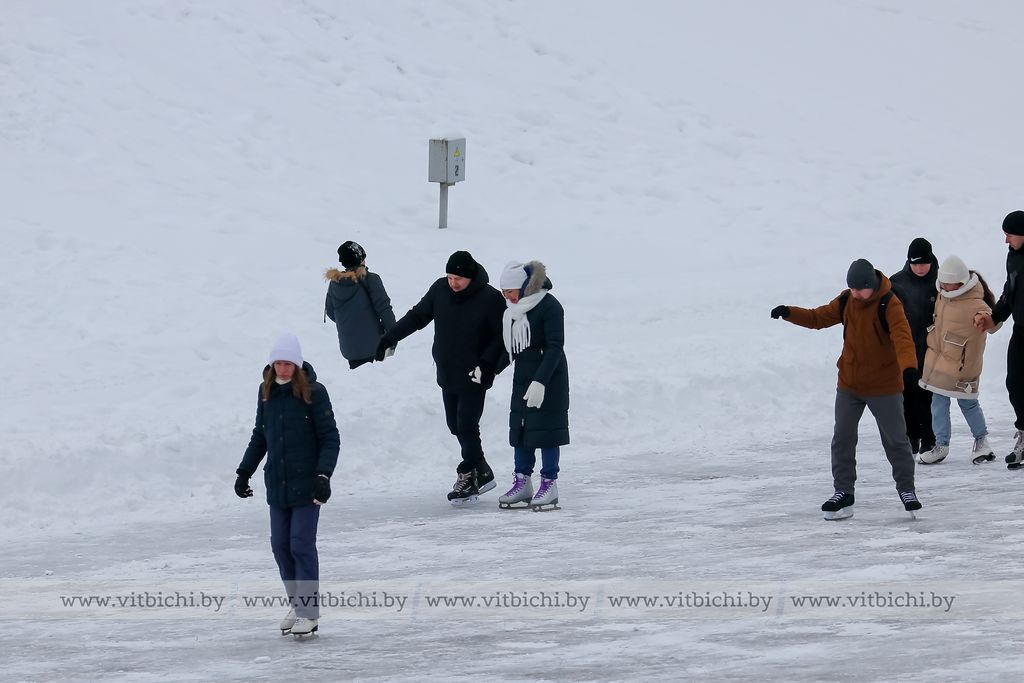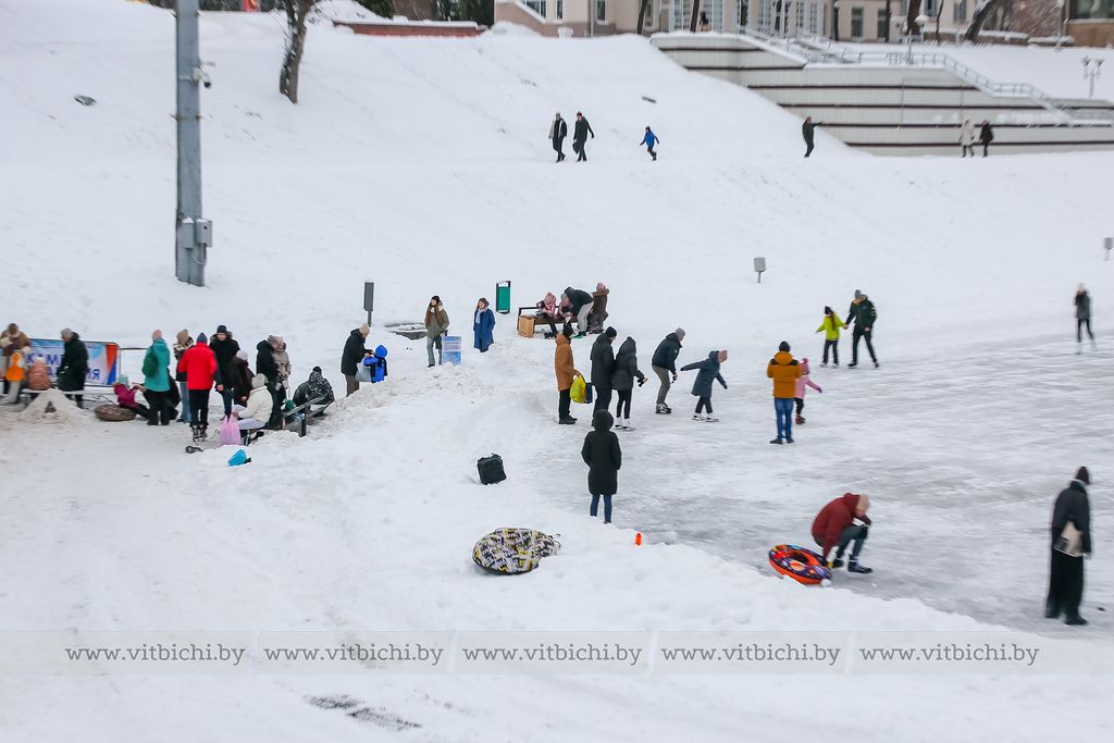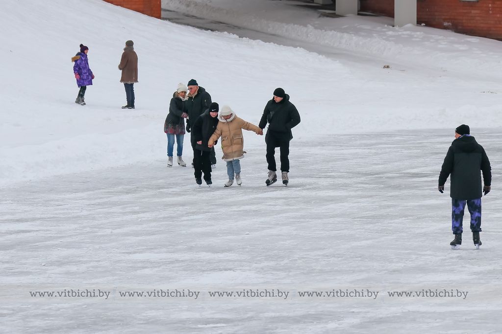 Снежная морозная зима открыла сезон на открытых ледовых площадках Витебска. Одна из них - возле культурно-спортивного комплекса «Летний амфитеатр».