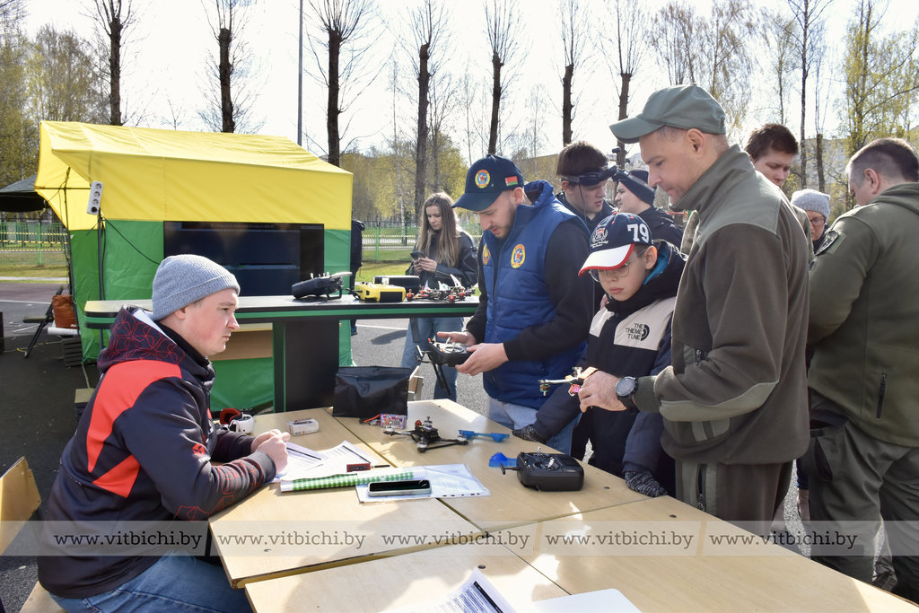 Захватывающие гонки на высокоскоростных FPV-дронах собрали участников и болельщиков на стадионе Витебского государственного технического колледжа.