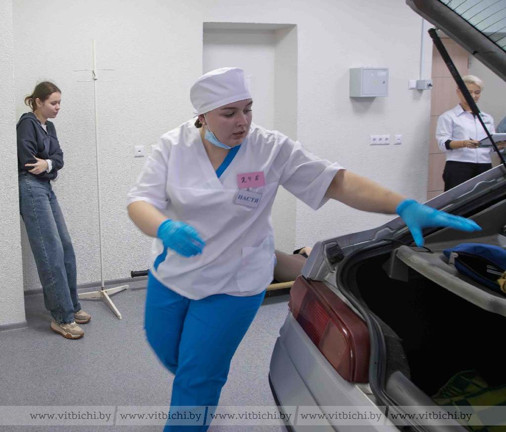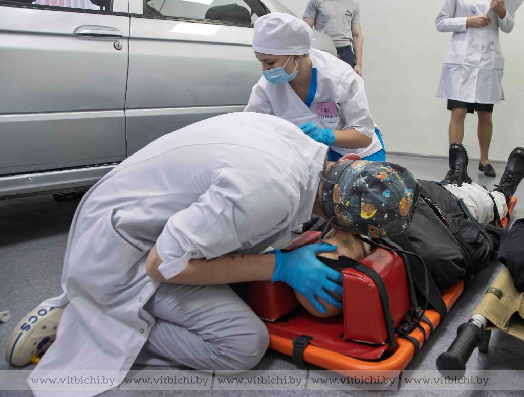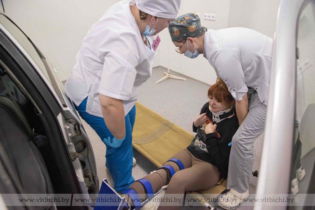 На самом деле, вот такую ситуационную задачу студент 5-го курса Гродненского государственного медицинского университета Егор Сивук и две старшекурсницы из Оршанского государственного медицинского колледжа получили на олимпиаде: за 15 минут (16-я – уже штрафная!) они должны были не просто проявить свою образовательную осведомленность, но и практически показать, что должны делать медики в такой ситуации.