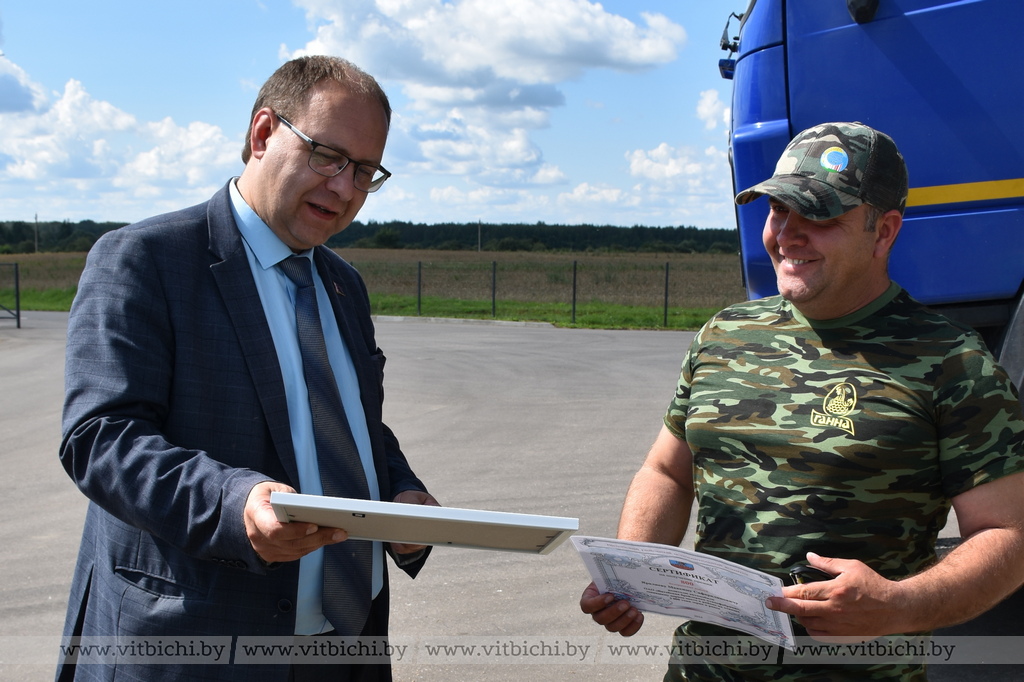 Поздравил водителя с трудовой победой и первый заместитель председателя Витебского райисполкома–начальник управления по сельскому хозяйству и продовольствию Пётр Коренкович. Он также пожелал продолжить побеждать.