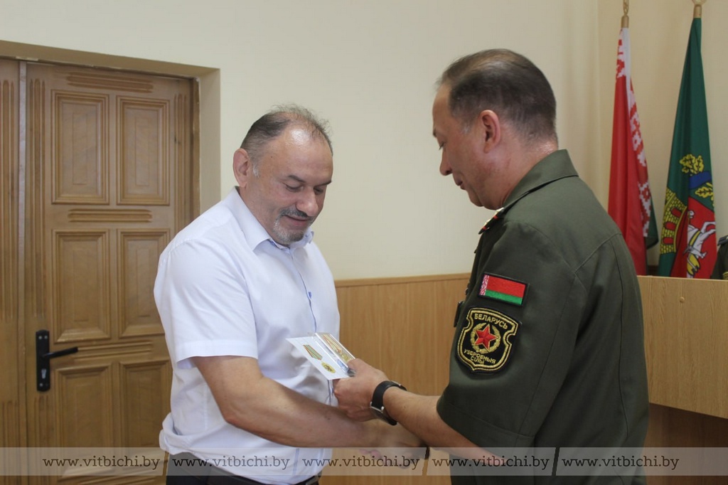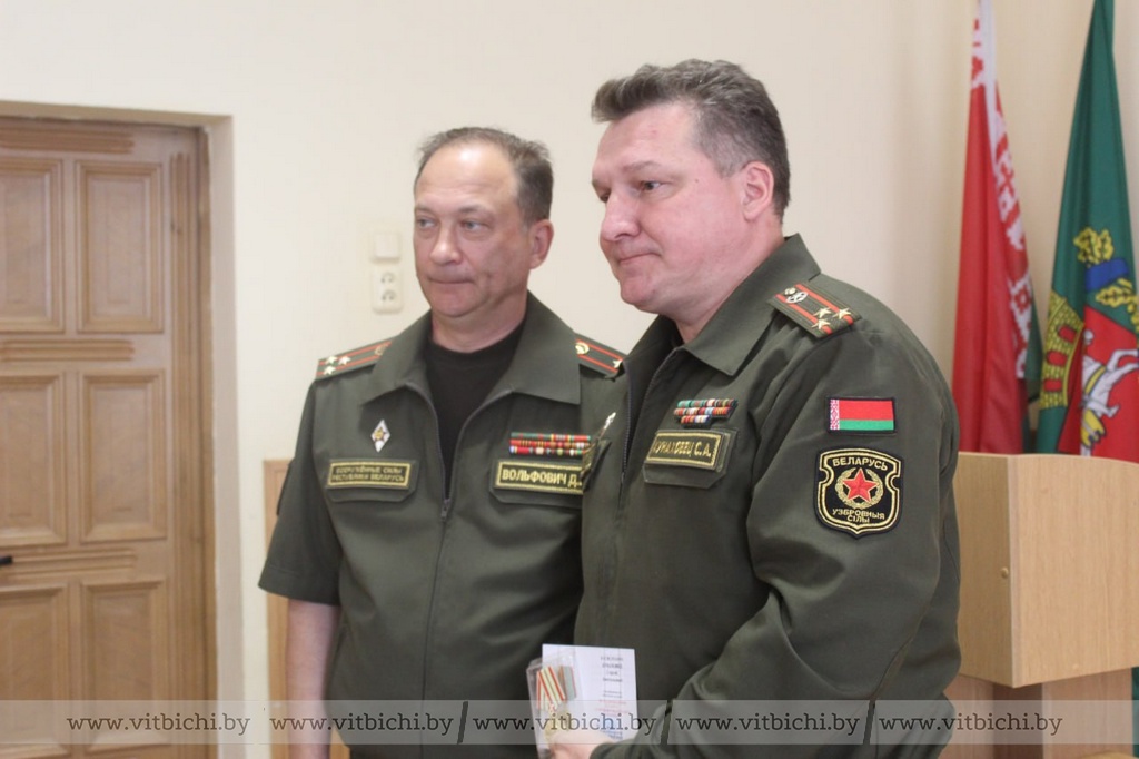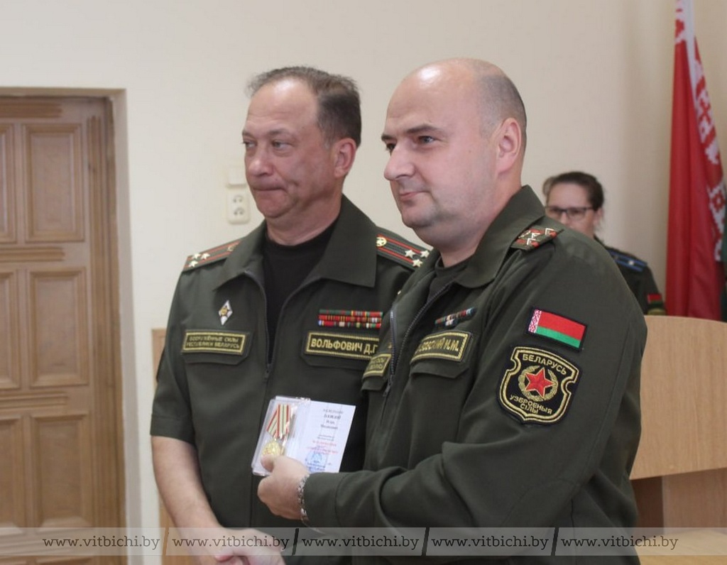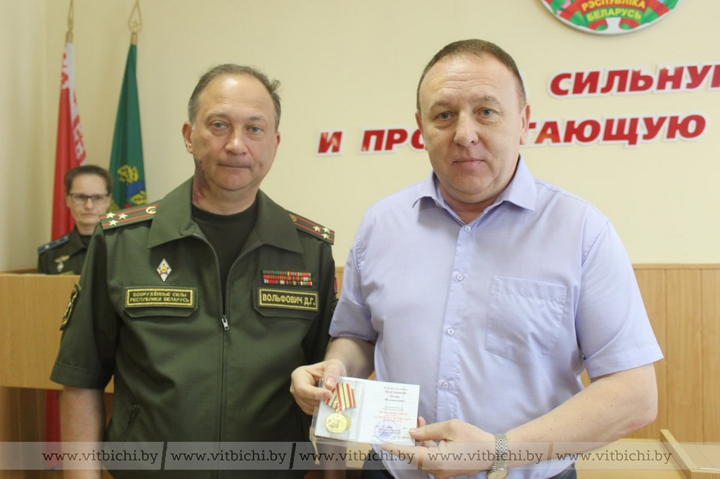 Военный комиссар Витебской области Дмитрий Вольфович в канун Дня Независимости вручил юбилейные медали «80 лет освобождения Беларуси от немецко-фашистских захватчиков» ветеранам Вооруженных Сил и военнослужащим военного комиссариата. В числе награжденных – полковники запаса Игорь Мартынов и Александр Бородий. Они внесли значительный вклад в героико-патриотическое воспитание граждан страны, увековечение памяти погибших в годы Великой Отечественной войны.