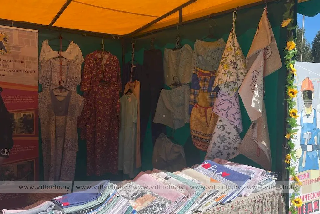 На стенде Оршанского политехнического колледжа — деревянные шкатулки ручной работы, плетеные изделия из лозы, постельное белье и даже одежда. Что по ценам? Плетеная корзинка из лозы – 30 рублей, постельное белье – от 72 рублей.