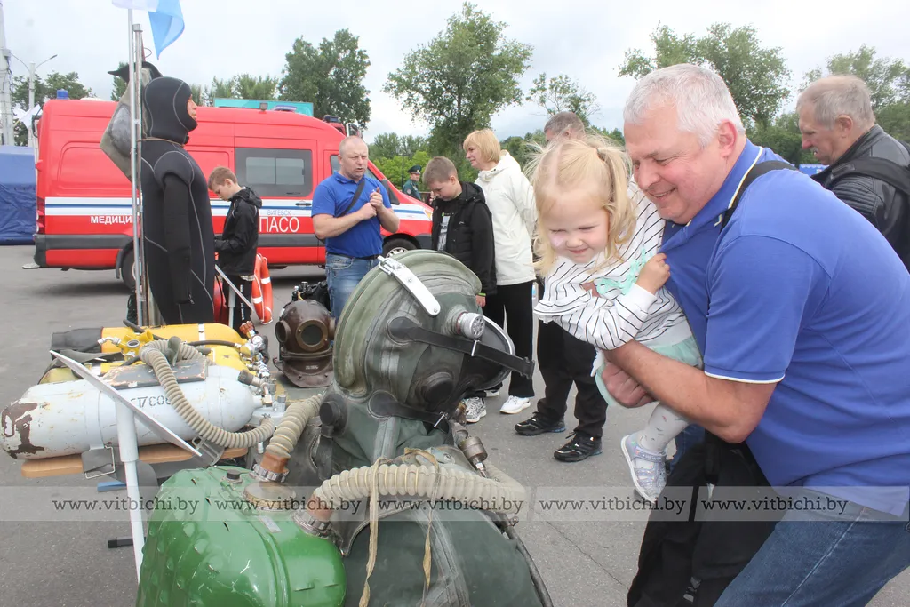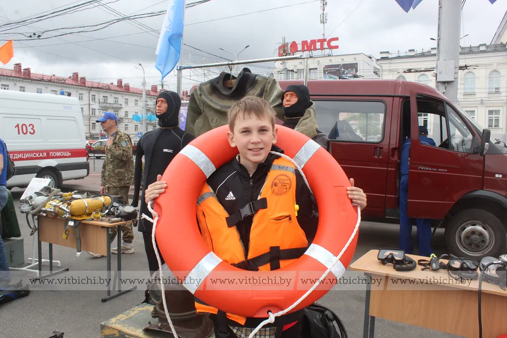 Гость праздника школьник Иван Мануйло приехал на День города из Москвы вместе с отцом Михаилом, пока глава семьи покупал вкусности в торговых рядах, сына заинтересовало водное спасательное снаряжение. Сотрудники ОСВОД помогли ему надеть спасательный жилет.