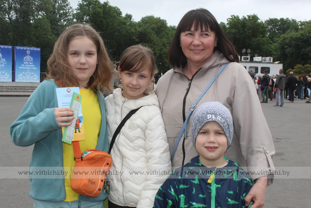 Праздничная атмосфера царит в Витебске, наполняет сердца горожан гордостью и радостью за свой любимый город. Несмотря на пасмурное небо, на лицах людей улыбки.