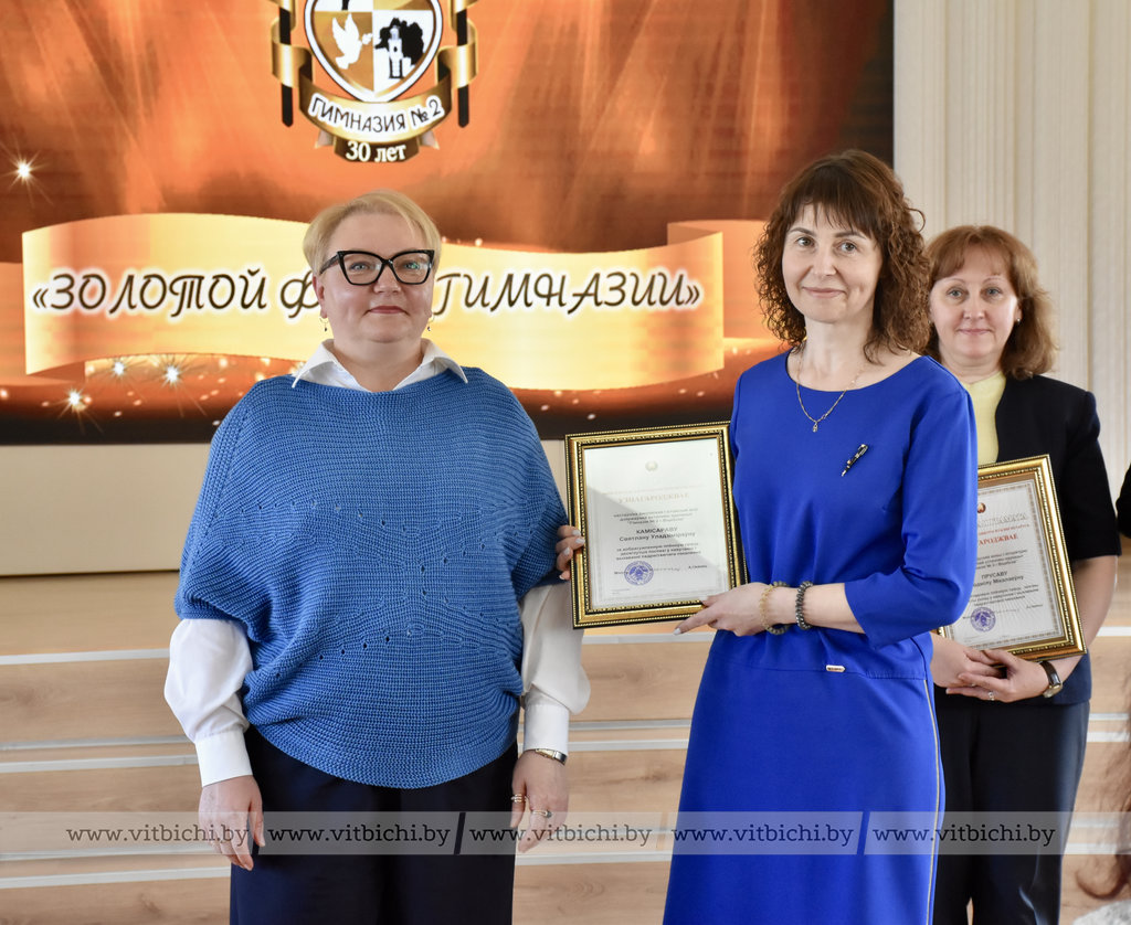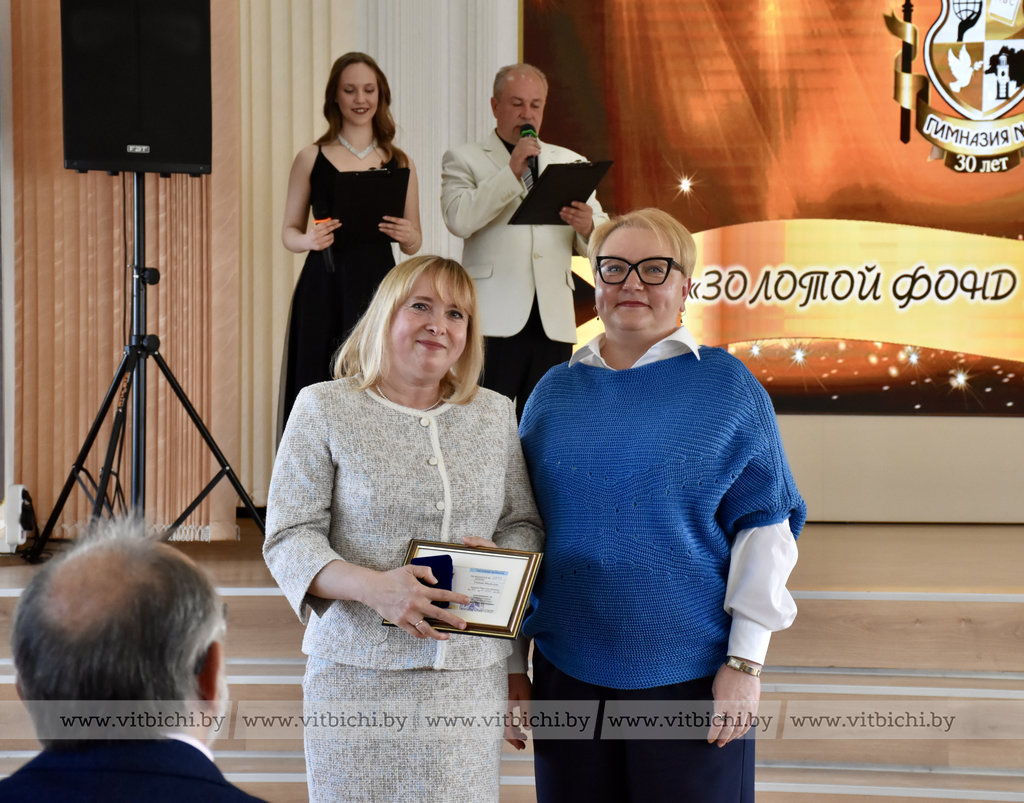 Фундаментом же интеллектуальных триумфов всегда был и остается самоотверженный труд педагогов. Особые слова признательности в этот день звучали в адрес ветеранов, стоявших у истоков гимназических традиций. Признанием высочайшего мастерства нынешней команды стало награждение порядка 30 педагогов грамотами и благодарностями различного уровня. Кульминацией церемонии стало вручение нагрудных знаков «Отличник образования Республики Беларусь» заместителю директора по учебной работе Татьяне Бурдо и учителю истории и обществоведения Ольге Чаплыгиной.