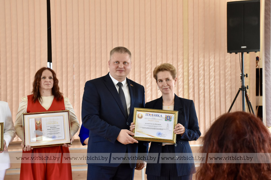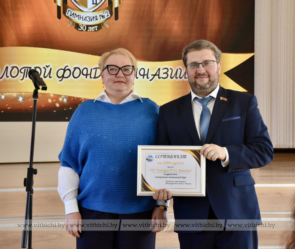 Признание заслуг коллектива прозвучало и на самом высоком государственном уровне. Руслан Шкодин вручил коллективу гимназии Благодарность от председателя Палаты представителей Национального собрания Республики Беларусь Игоря Сергеенко.