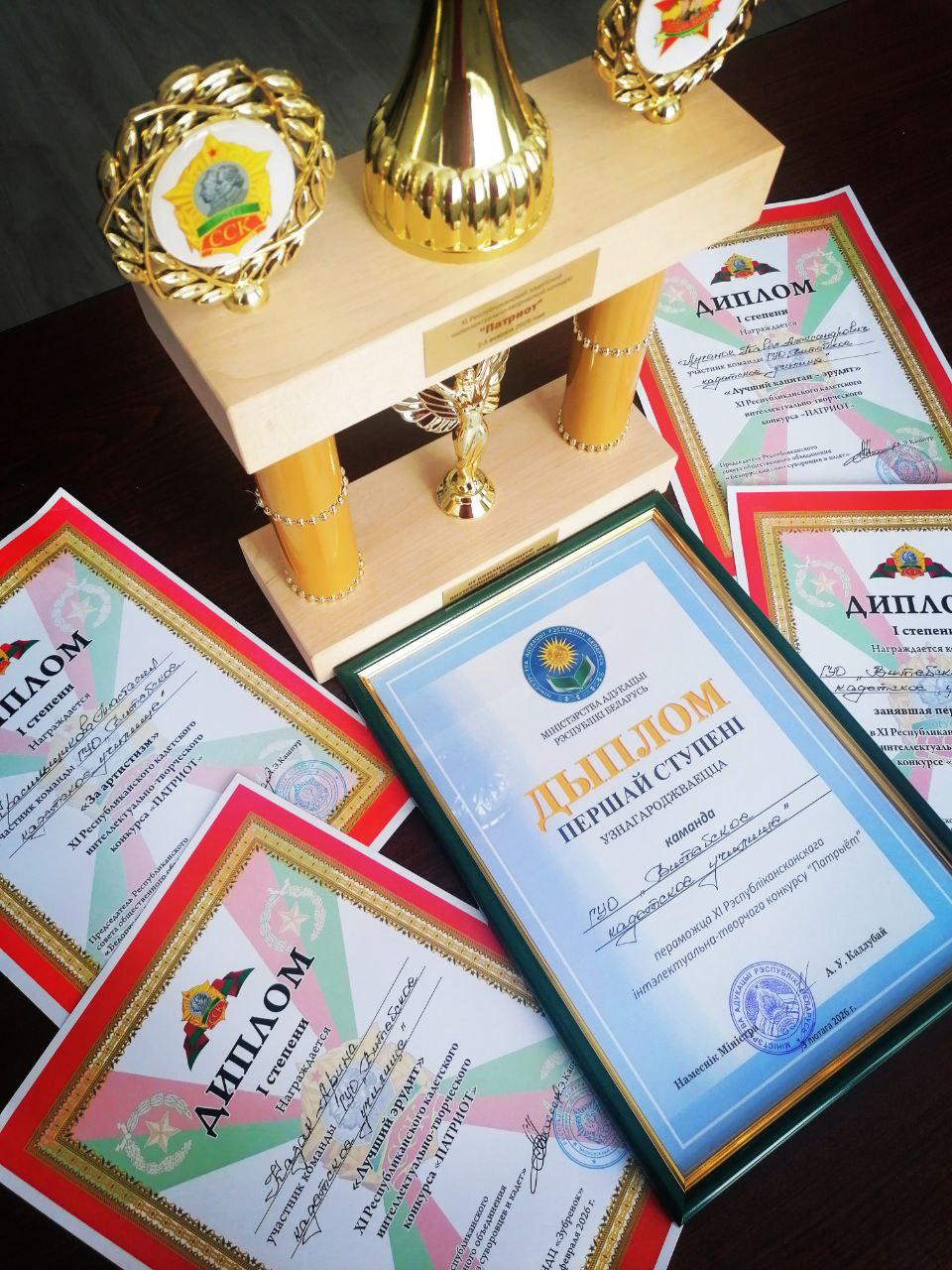 По итогам двух конкурсных дней наши ребята заняли первое место, став восьмикратным победителем этого соревнования, а Павел Лученок одержал победу в номинации «Лучший эрудит-капитан», ответив на семь из восьми вопросов во время разминки капитанов. Арина Казак лидировала в номинации «Лучший эрудит (фильмы)», ответив на все вопросы на знание содержания кинофильмов патриотической тематики. Не было равных в номинации «За артистизм» в конкурсе ораторов Анастасии Красильщиковой, которая проникновенно раскрыла тему «Чернобыль — наша боль и память».