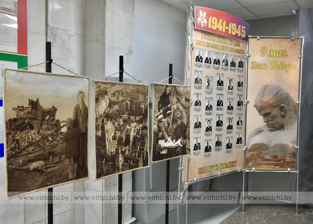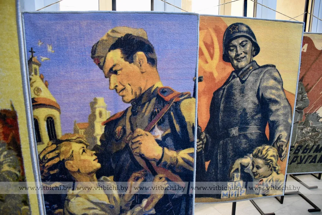 Изготовлены 10 ковров с изображением плакатов: «Родина-мать зовёт!», «Разгромим фашистских налётчиков!», «Слава боевым подругам!», «За Родину-мать!» и других. А на еще 15 ковровых полотнах можно увидеть изображения мемориального комплекса «Брестская крепость-герой», мемориала на Площади Победы в Витебске, могилевского воинского мемориала «Буйничское поле», мемориального комплекса «Хатынь» и других.