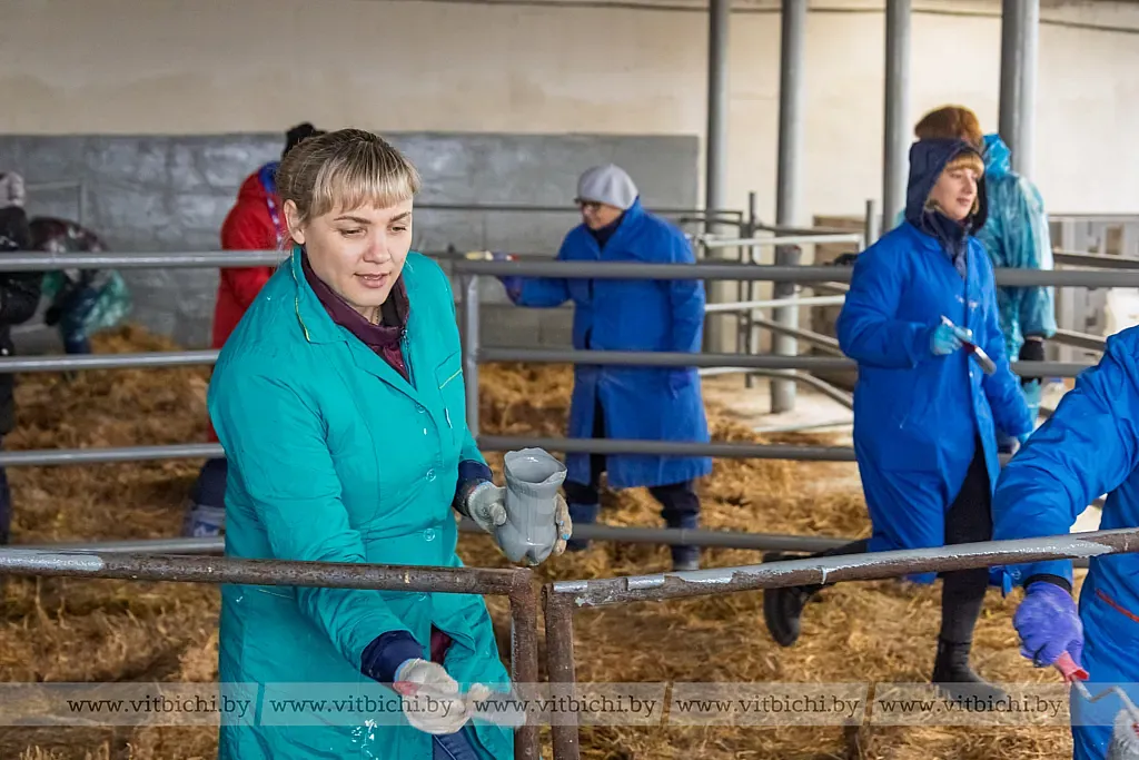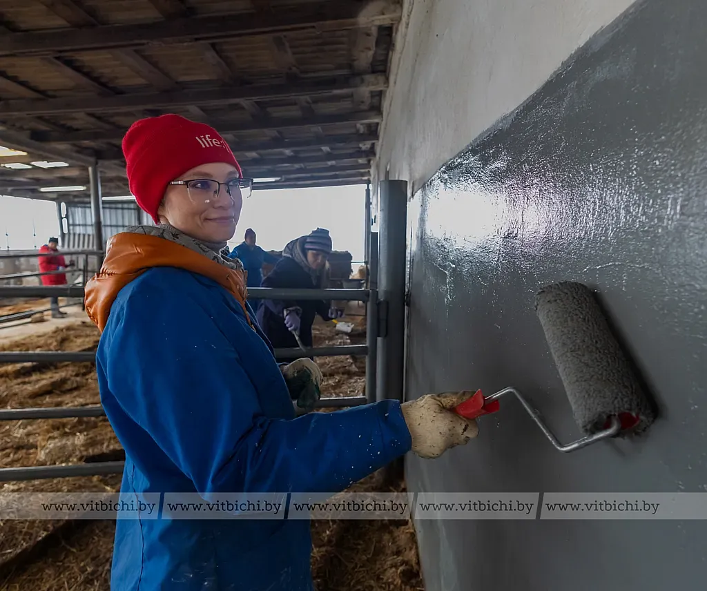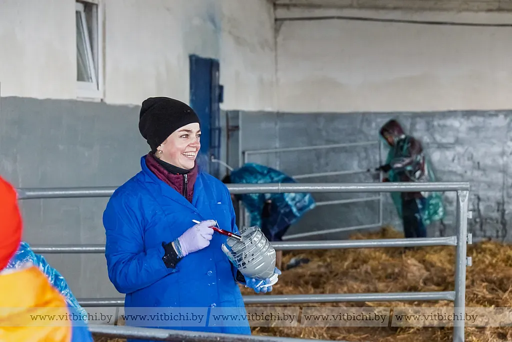 Коллективный труд сплотил на молочно-товарной ферме «Вороны» ГП «Рудаково» работников Витебской районной ветеринарной станции и представительства Белгосстраха по Витебскому району. Пока мужчины обкашивали территорию животноводческого объекта и убирали мусор, женщины, вооружившись валиками и кисточками, красили стены и ограждения в помещении профилактория. По завершении чего они собирались перешли для наведения порядка в коровник, где содержится 115 голов дойного стада.