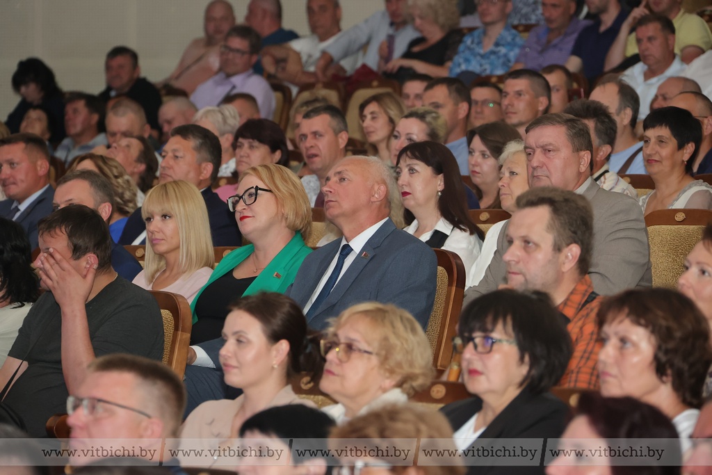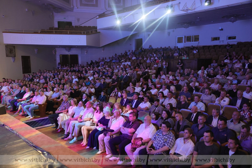От лица руководства Витебского облисполкома Анжелика Никитина поздравила коллектив завода, который насчитывает почти 500 человек, с юбилеем предприятия, пожелала добра, мира и благополучия, перспективных планов и жизненной энергии, оптимизма и здоровья для их реализации.