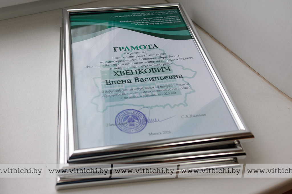 Результаты прошлогодней деятельности филиала в Витебске высоко оценило руководство Белгидромета, о чем проинформировала заместитель начальника Екатерина Гладун. Она также вручила грамоты и благодарности большой группе витебских коллег.