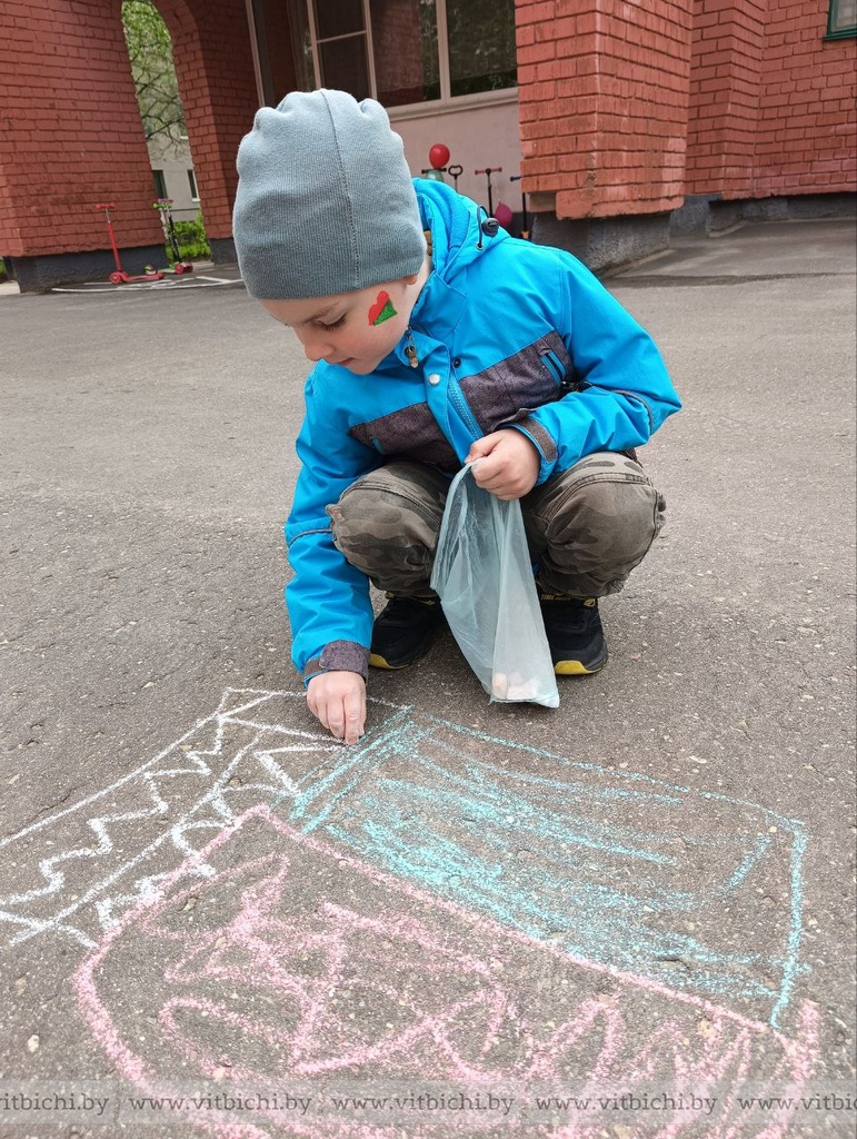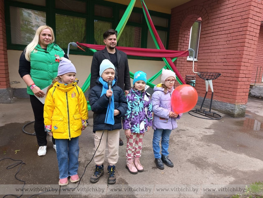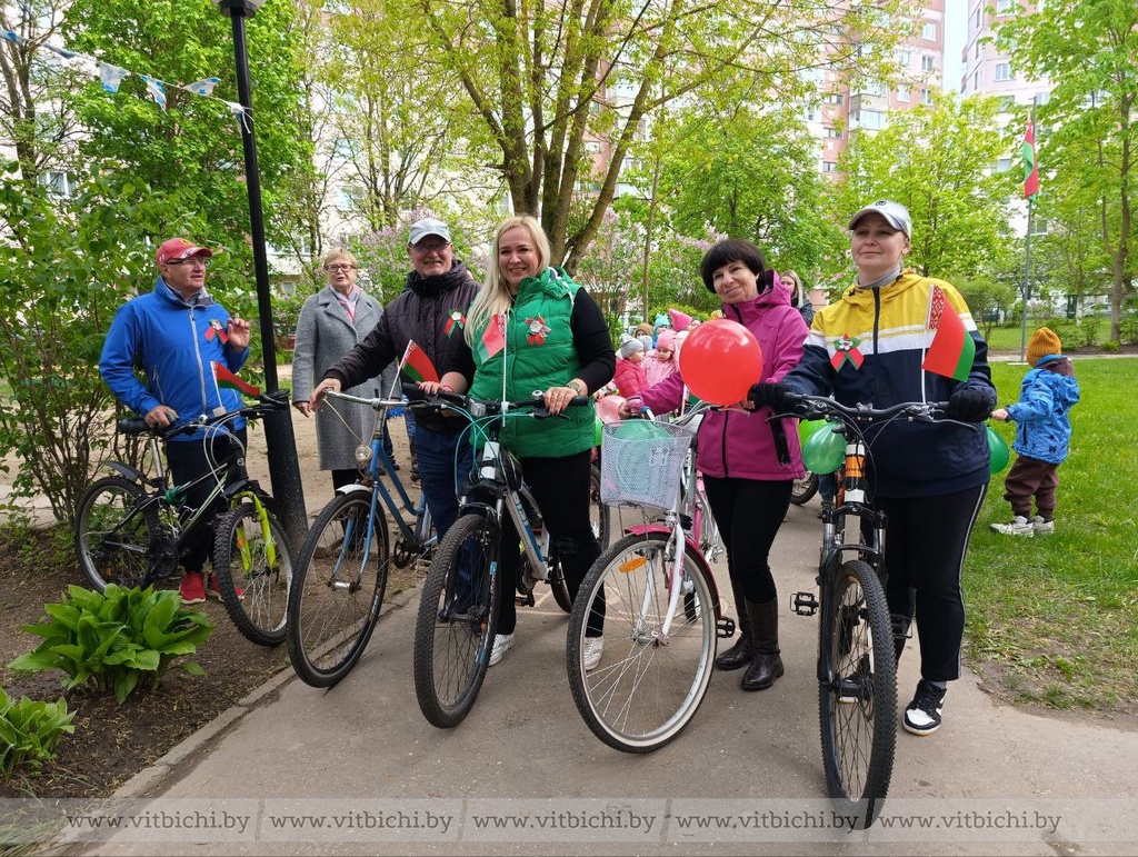 Ребята исполнили гимн страны, читали стихи о войне и Великой Победе, затаив дыхание смотрели, как активисты Первомайского районного комитета Белорусского республиканского союза молодежи подняли флаг нашей республики. Позже воспитанники и работники детского сада во главе с заведующим Анной Ярошевской совершили велопробег. На самокатах и велосипедах, украшенных флагами Беларуси и воздушными шарами красного и зеленого цвета, участники акции сделали несколько кругов вокруг дошкольного учреждения.