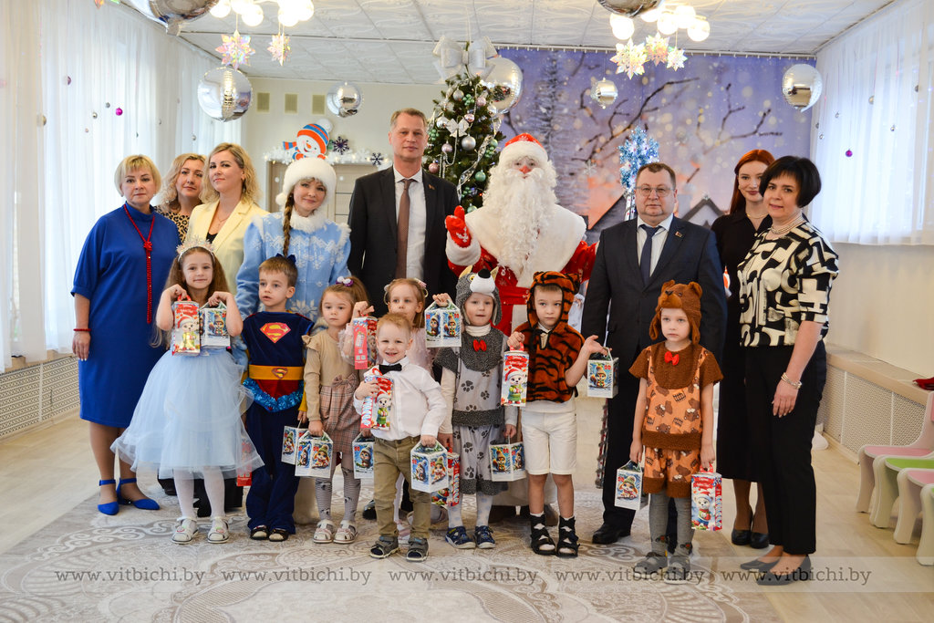 Глава администрации Октябрьского района Владимир Белевич и начальник отдела по образованию района Андрей Похолкин поздравили ребят и их родителей с новогодними праздниками, пожелали всем крепкого здоровья и исполнения самых заветных желаний. Гости вручили юным участникам утренника наборы со сладостями, а педагогам детского сада – сертификат на приобретение спортивного оборудования.