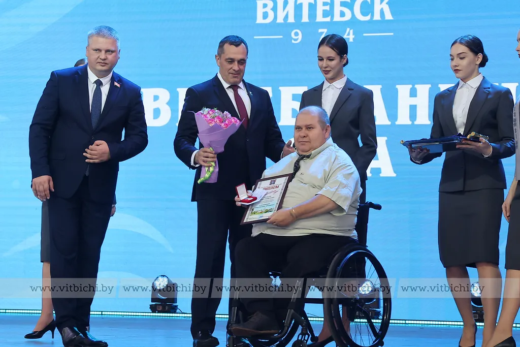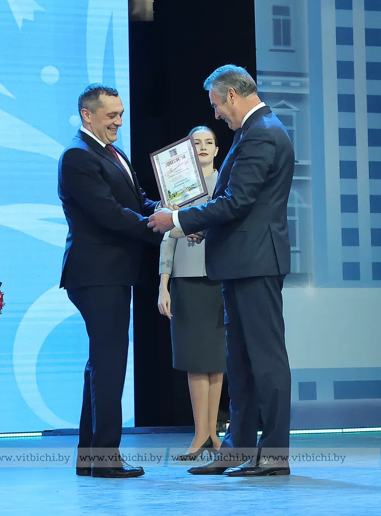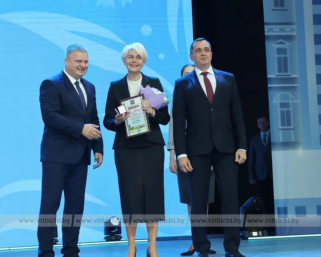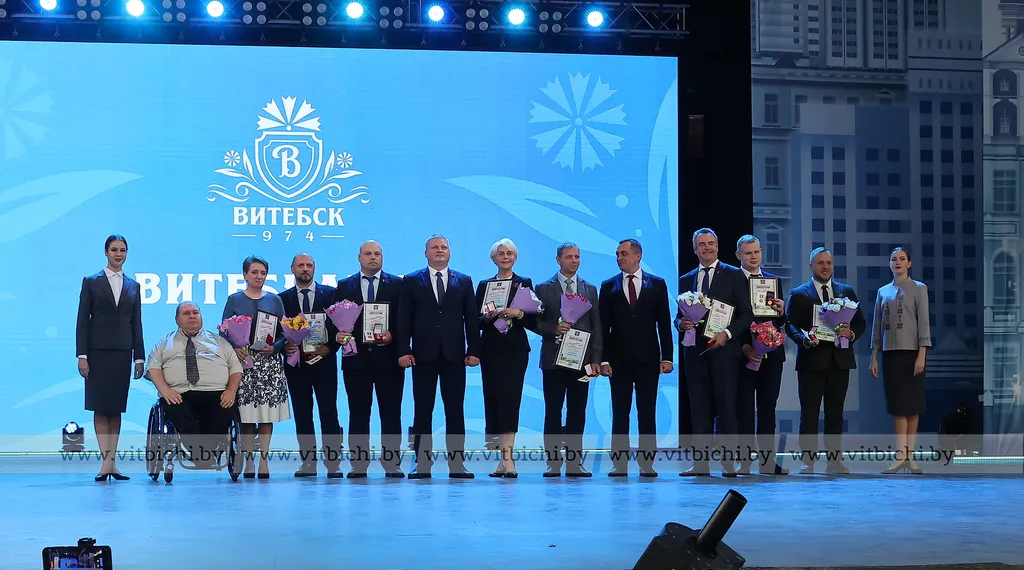 На торжественном мероприятии в Летнем амфитеатре состоялась официальная церемония присвоения звания "Витебчанин года". Его удостоены 10 витебчан за высокие успехи на профессиональном поприще, большой вклад в социально-экономическое и культурное развитие города, развитие волонтерского движения и благотворительность.