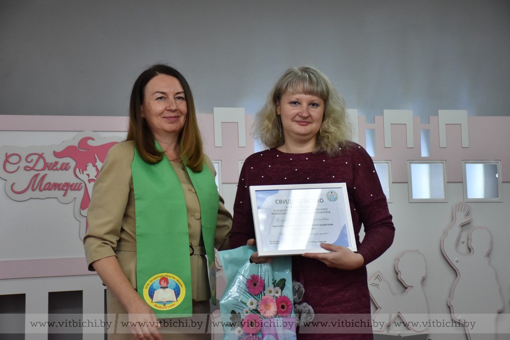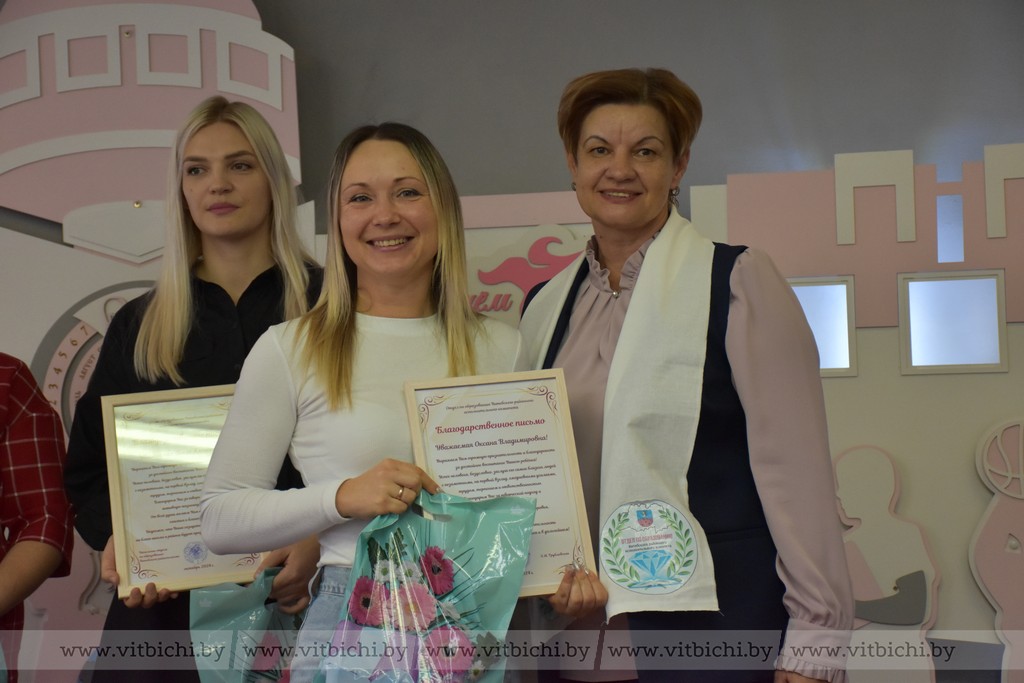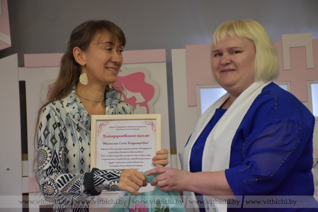 Поздравляя мам с приближающимся праздником, начальник отдела по образованию Витебского райисполкома Ольга Трубловская, отметила, что сегодняшний день войдет в историю Придвинья, ведь в районе образовались две новые приемные семьи. Виктория Лисойван из агрогородка Бабиничи и Елена Соловьёва из деревни Лятохи будут воспитывать по трое деток. Этим женщинам, решившим обогреть своей любовью и заботой детей из приюта, в торжественной обстановке Ольга Трубловская вручила свидетельства о приеме на работу в отдел по образованию Витебского райисполкома.