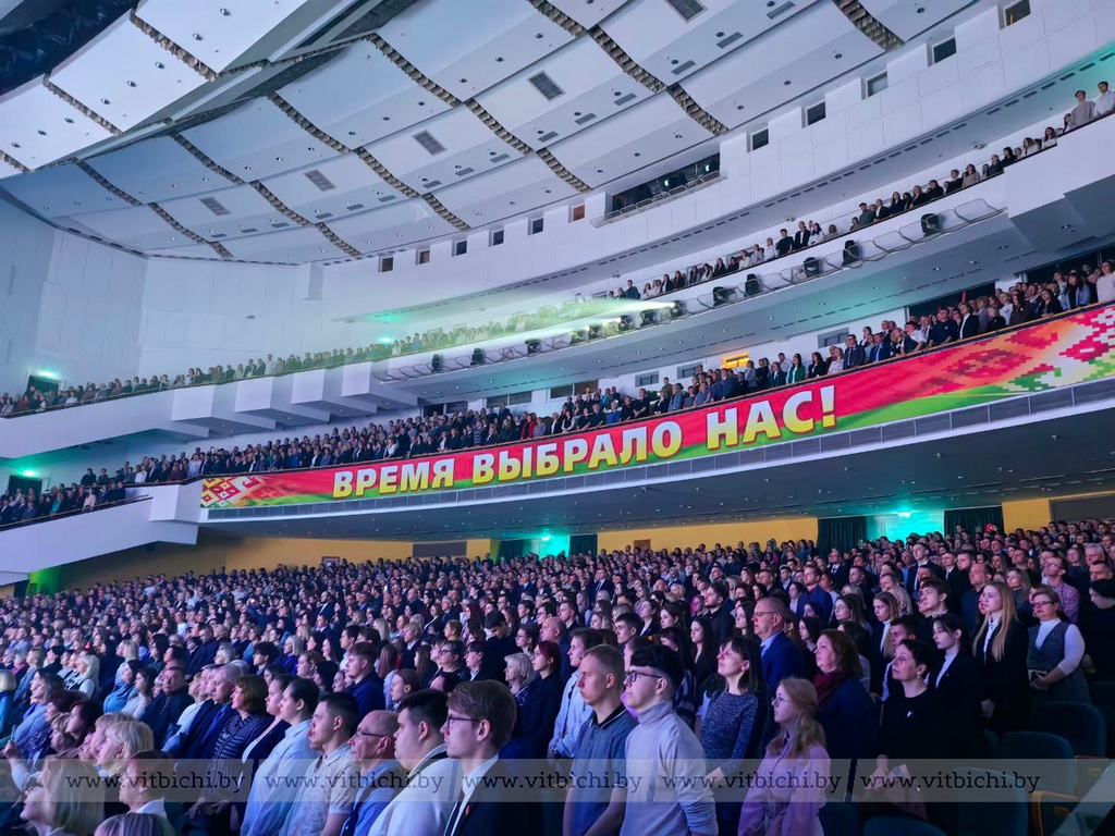 — Мы собрались в центре столицы нашей Родины города-героя Минска. Нас более двух тысяч зрителей — школьников, студентов, ветеранов, представителей всех направлений экономики и социальной сферы. Мы все разные, но сегодняшняя тема близка каждому из нас, — сказал Александр Субботин.