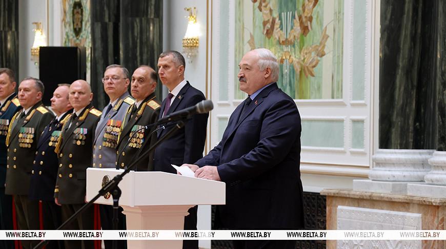 Президент Беларуси Александр Лукашенко вручил генеральские погоны представителям высшего офицерского состава, передает корреспондент БЕЛТА.