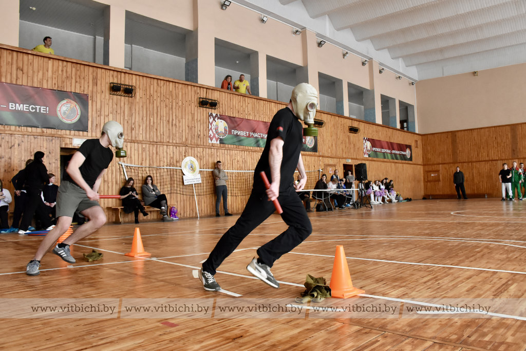 В Железнодорожном районе правоохранители, десантники и их юные воспитанники -- члены клуба "Патриот" средней школы номер 21 Витебска имени Героя Советского Союза В. А. Демидова соревновались в эстафете с элементами различных видов спорта.