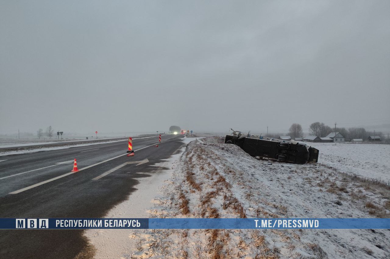 По предварительной версии, 43-летний водитель, двигаясь со стороны Минска, не справился с управлением, после чего транспортное средство съехало в правый по ходу движения кювет и перевернулось.