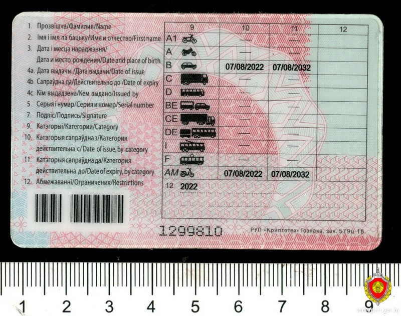 Судебный эксперт установил, что бланк водительского удостоверения Республики Беларусь изготовлен не предприятием, осуществляющим производство продукции данного вида. Все изображения лицевой и оборотной сторон бланка выполнены способом цветной струйной печати.