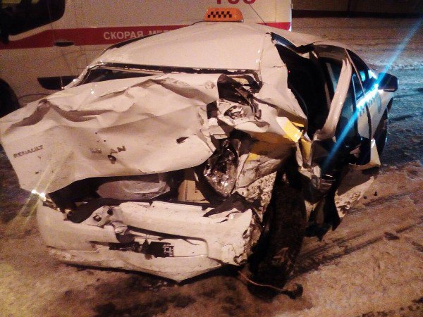 В воскресенье около часа ночи по улице Гагарина произошла авария. Водитель предприятия «Новое такси» на автомобиле "Рено» остановился для высадки пассажира. Когда девушка-пассажир уже покинула салон, в такси внезапно врезался автомобиль «Дэу».